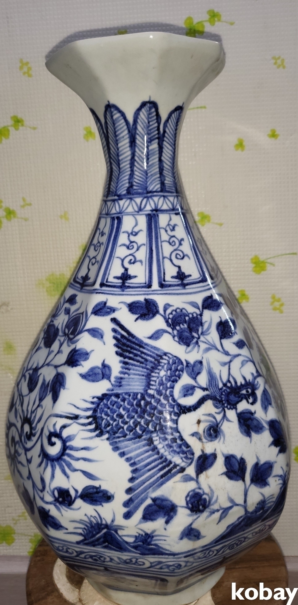 징기스칸 관지 대원국 성길사간 만세만세 만만세 . 청화백자 쌍봉황문양 8각병입니다,