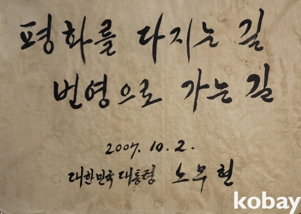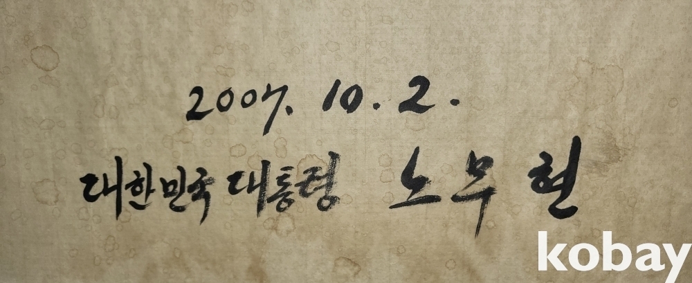 노무현 전 대통령 수결이 보이는 종이에 먹(墨) 서예입니다