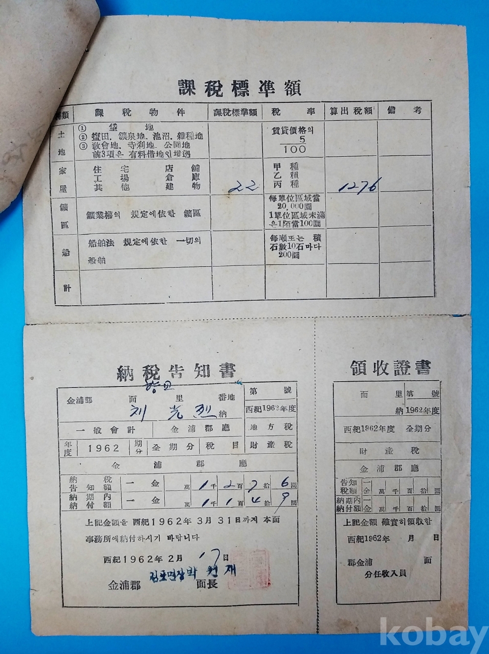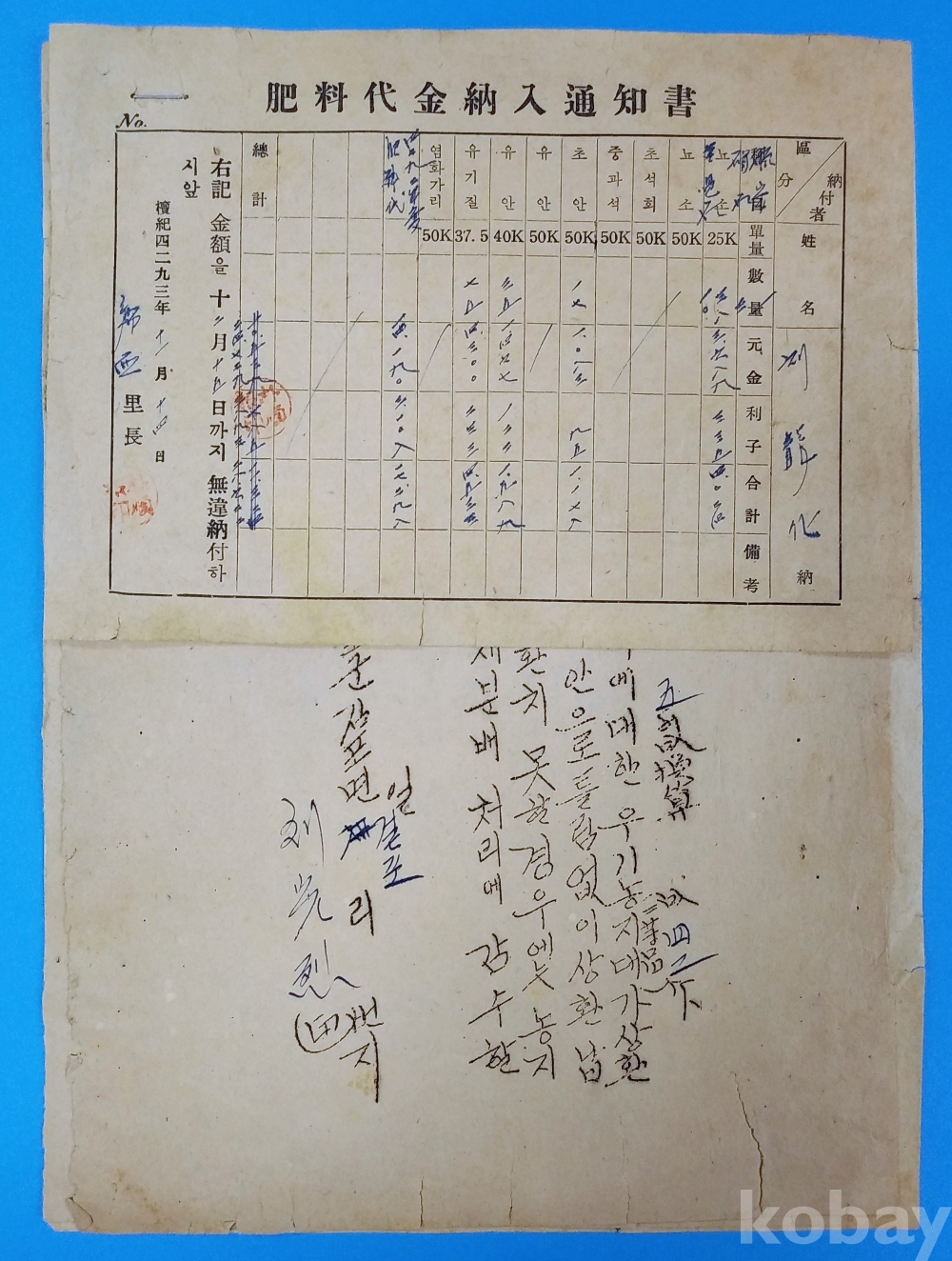 [김포자료] 비료대금납입통지서,농지대가상환 서약서,납세고지서