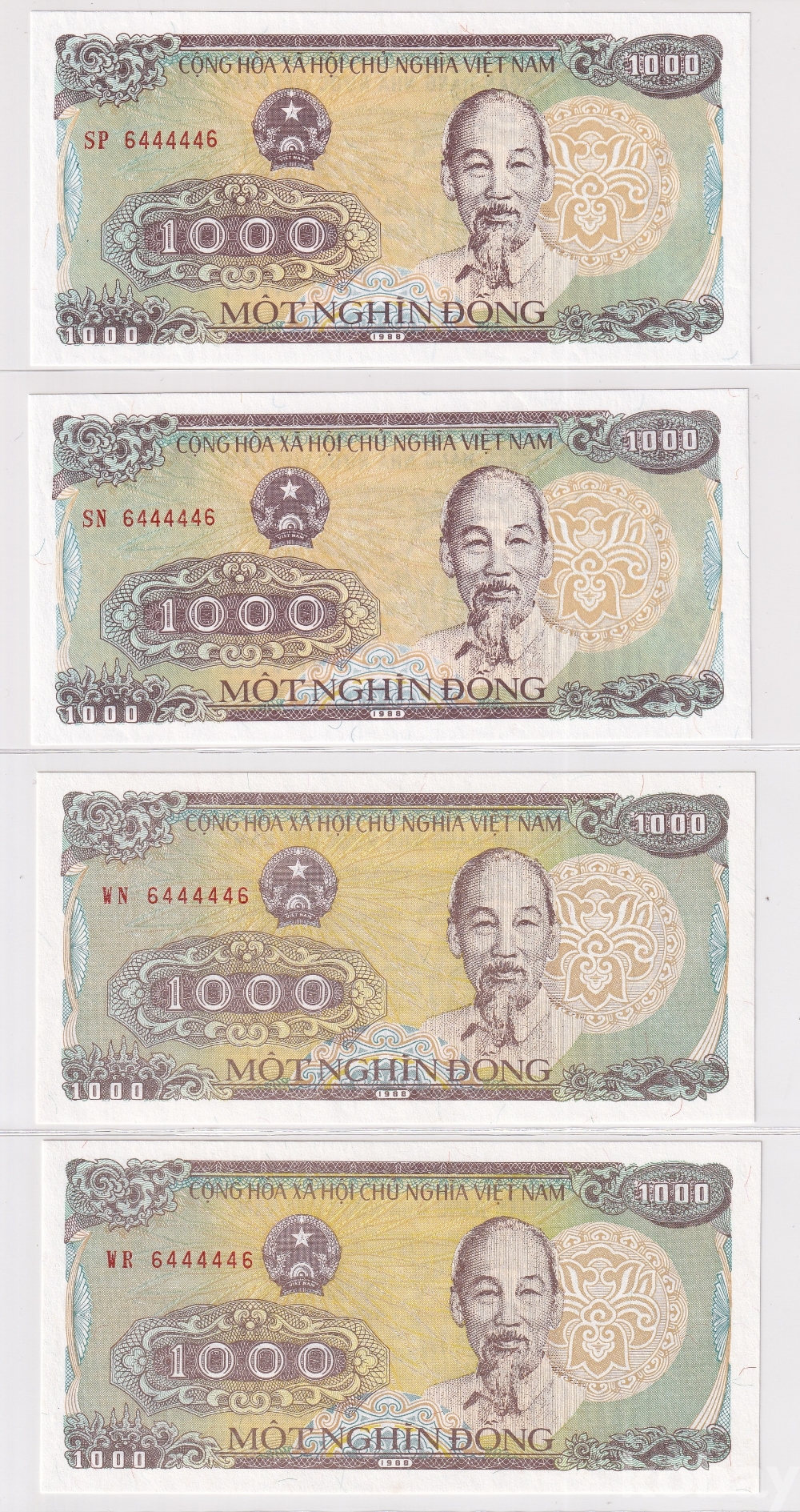 [베트남 지폐 특이번호 모음展] 1988년 1000동 6 44444 6 투 디지트 오봉 레이더 4쌍둥이