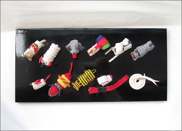 약 28cm X 13.5cm 우드 판 위에 여러 색상의 로프로