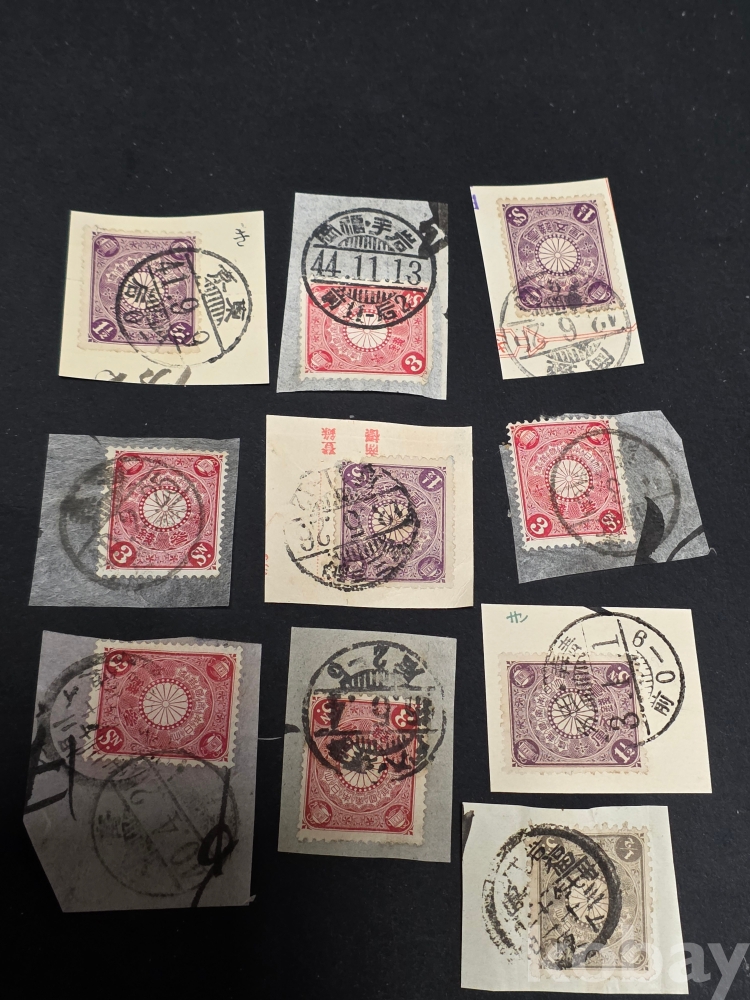 일본 1900년 이후 만월 국화 우표 10장. 1900년대 준클래식 우표