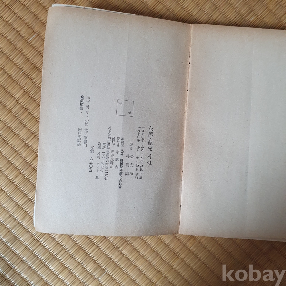 영랑과용아 강진과광주출신절친작품을 기리기위해 만들어진 초판본 책임니다