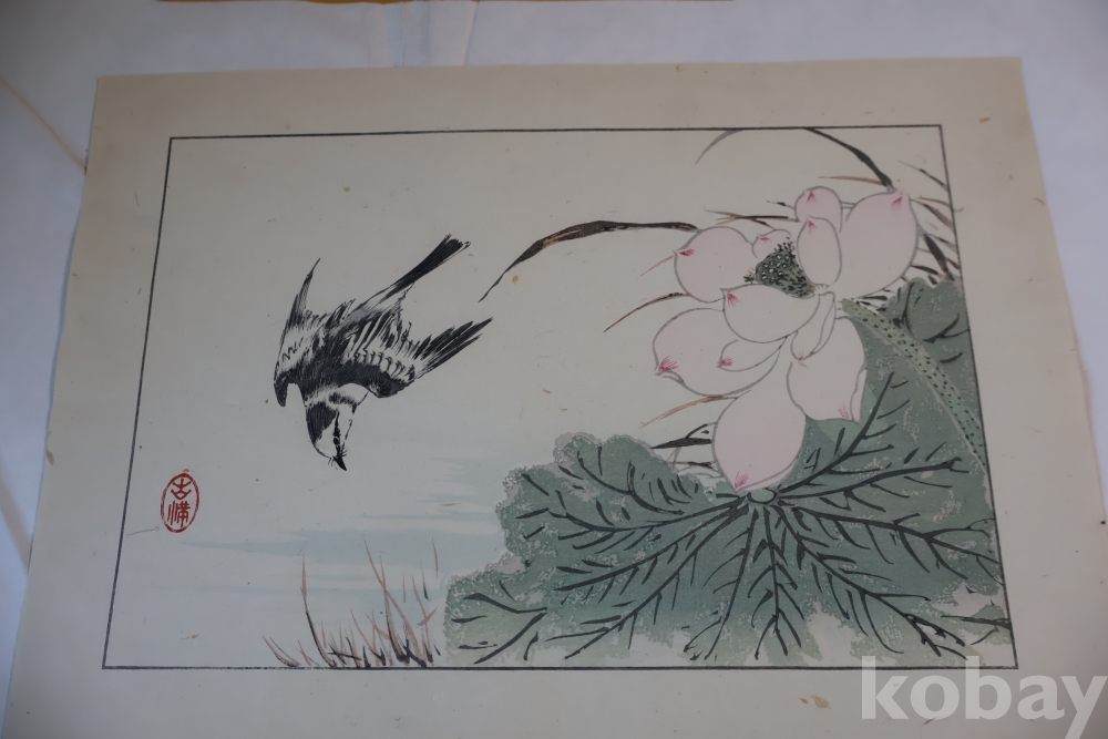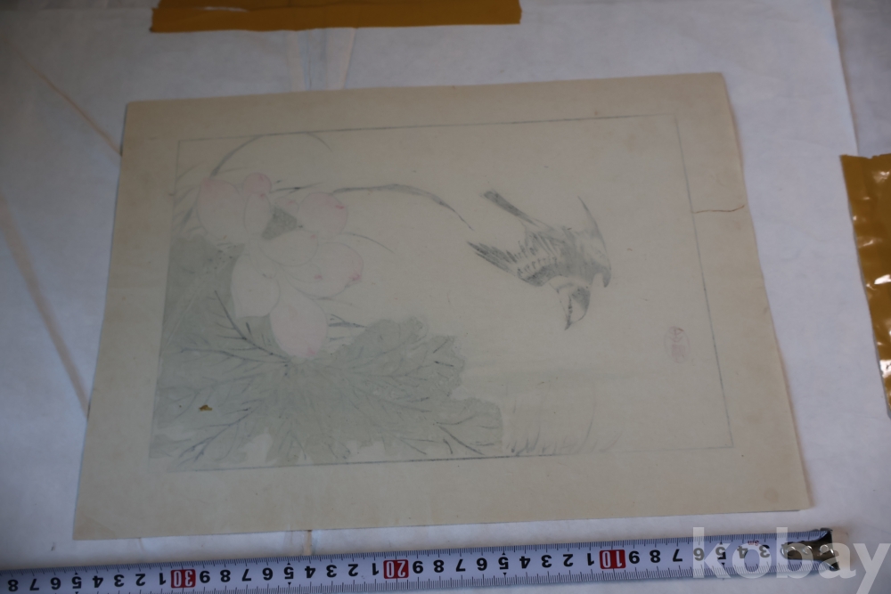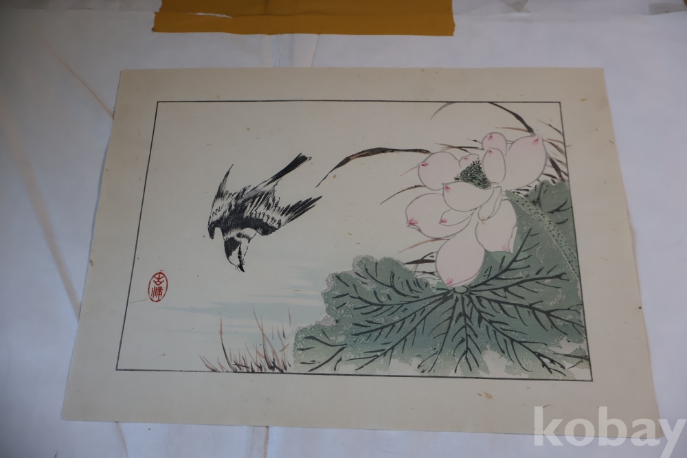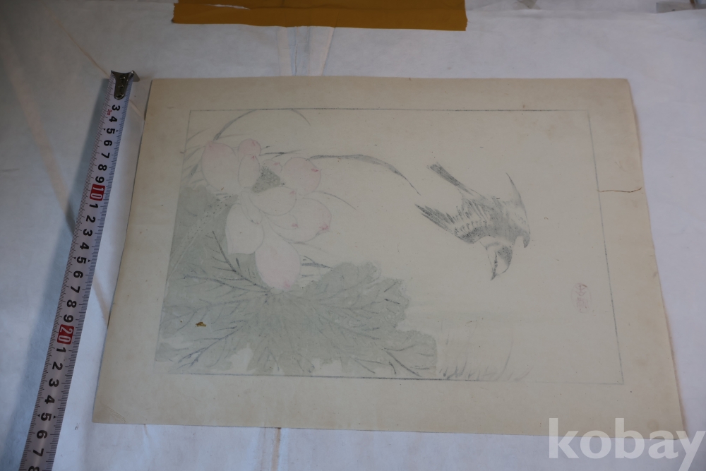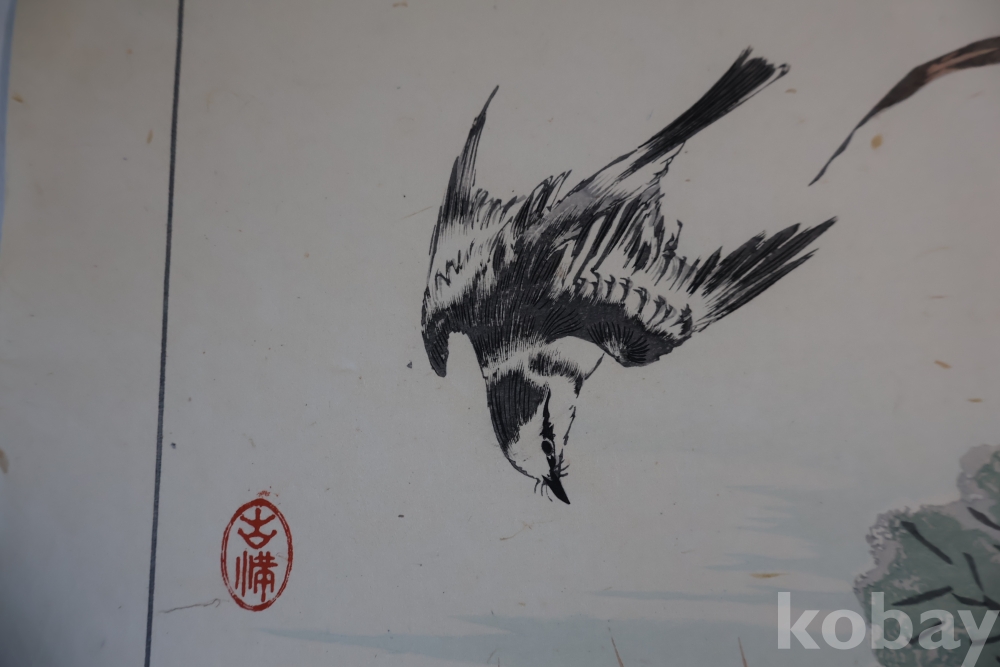 1930 대 목판화 새 임니다 아름다운 디자인 구도 섬세 함을 가진 명화 임니다 화가의 낙관이 보임니다