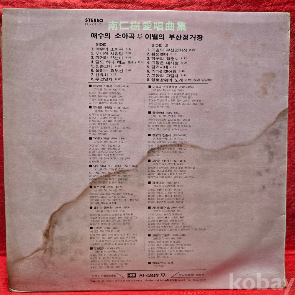 중고 LP인 관계로 취소나 반품도 불가합니다.