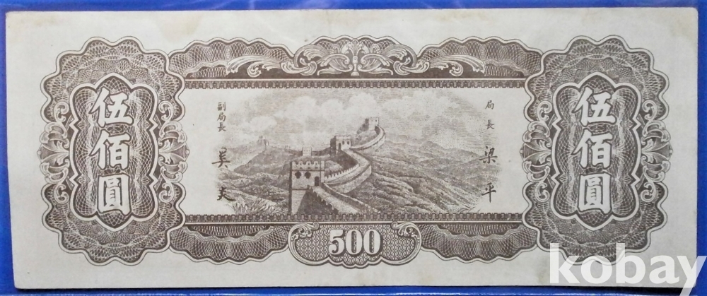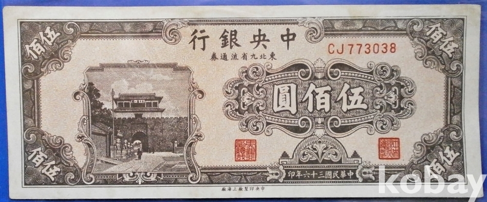 중국 중앙은행 500원 민국36년