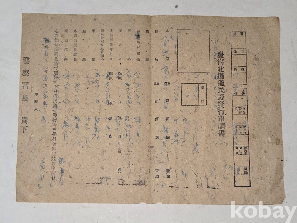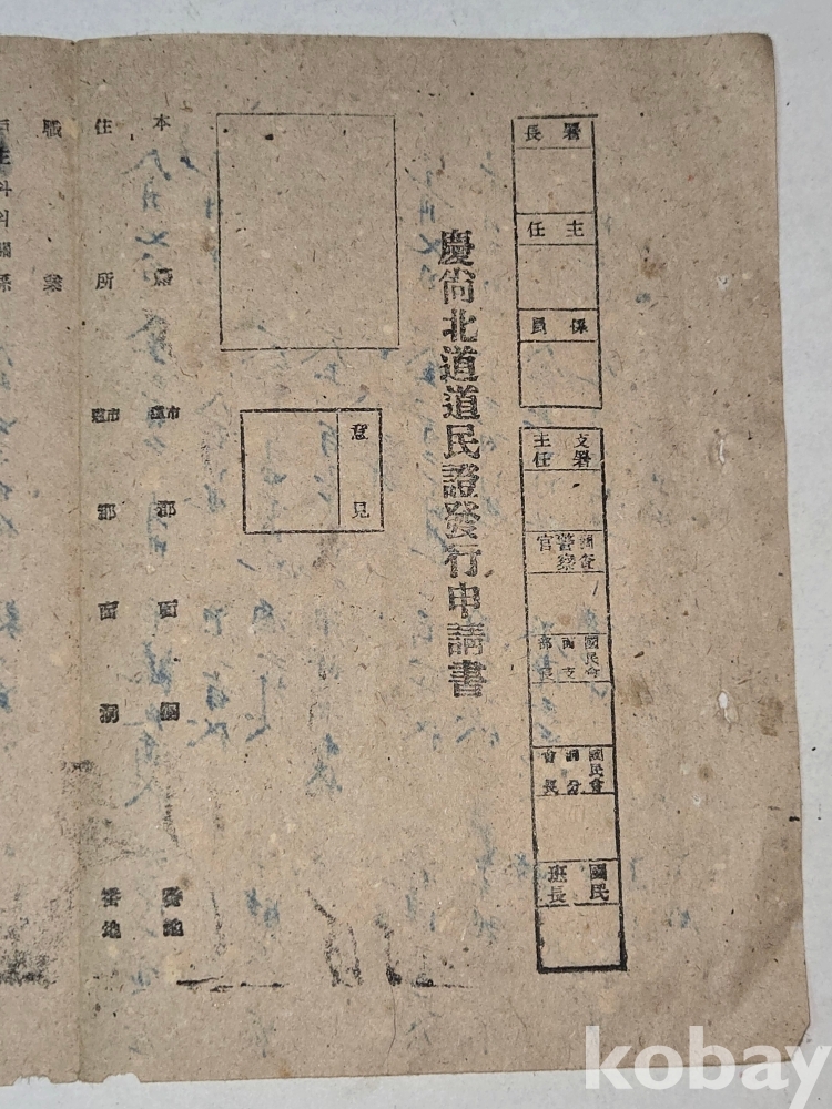 1950년대 경상북도 도민증발행신청서 == 미사용 상태