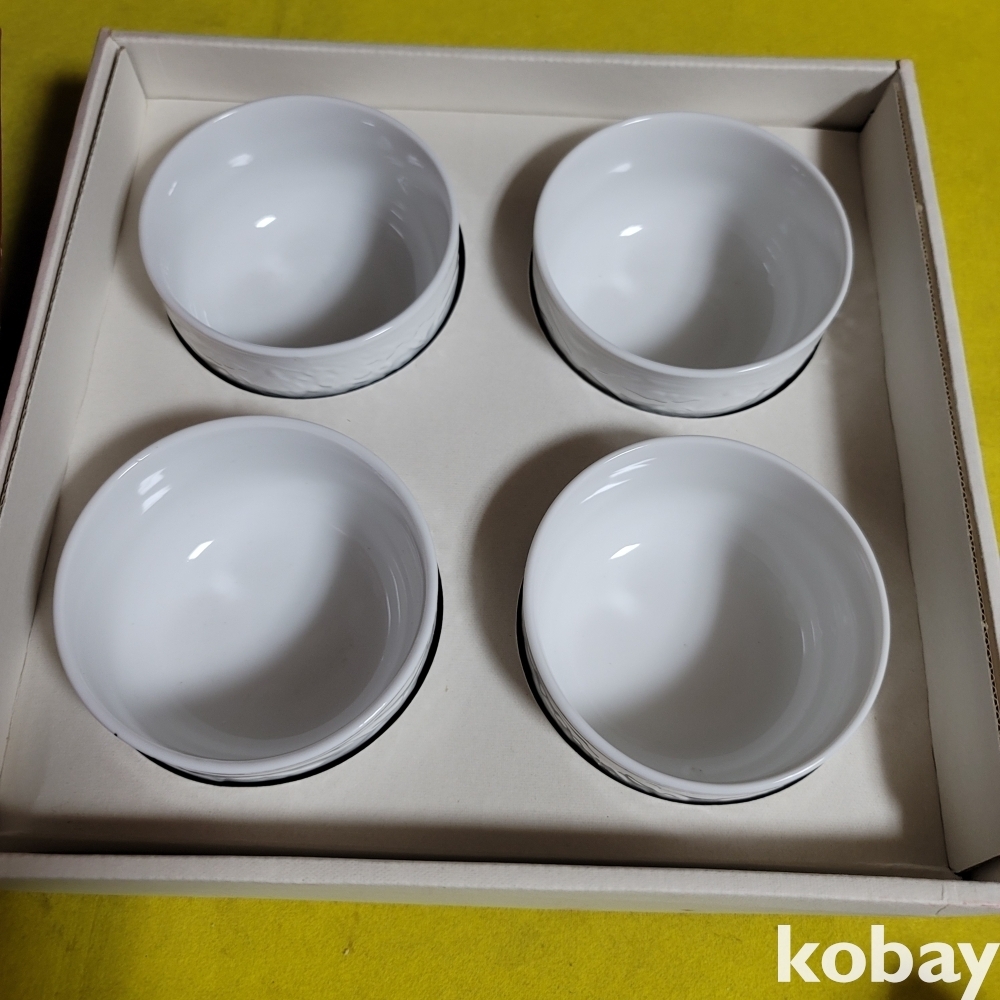 (((근현대사자료/판촉물))) 오래전 LG 전자 석계대리점 LG 싱싱 냉장고 김장독등 광고있는 도자기공기세트 (미사용)