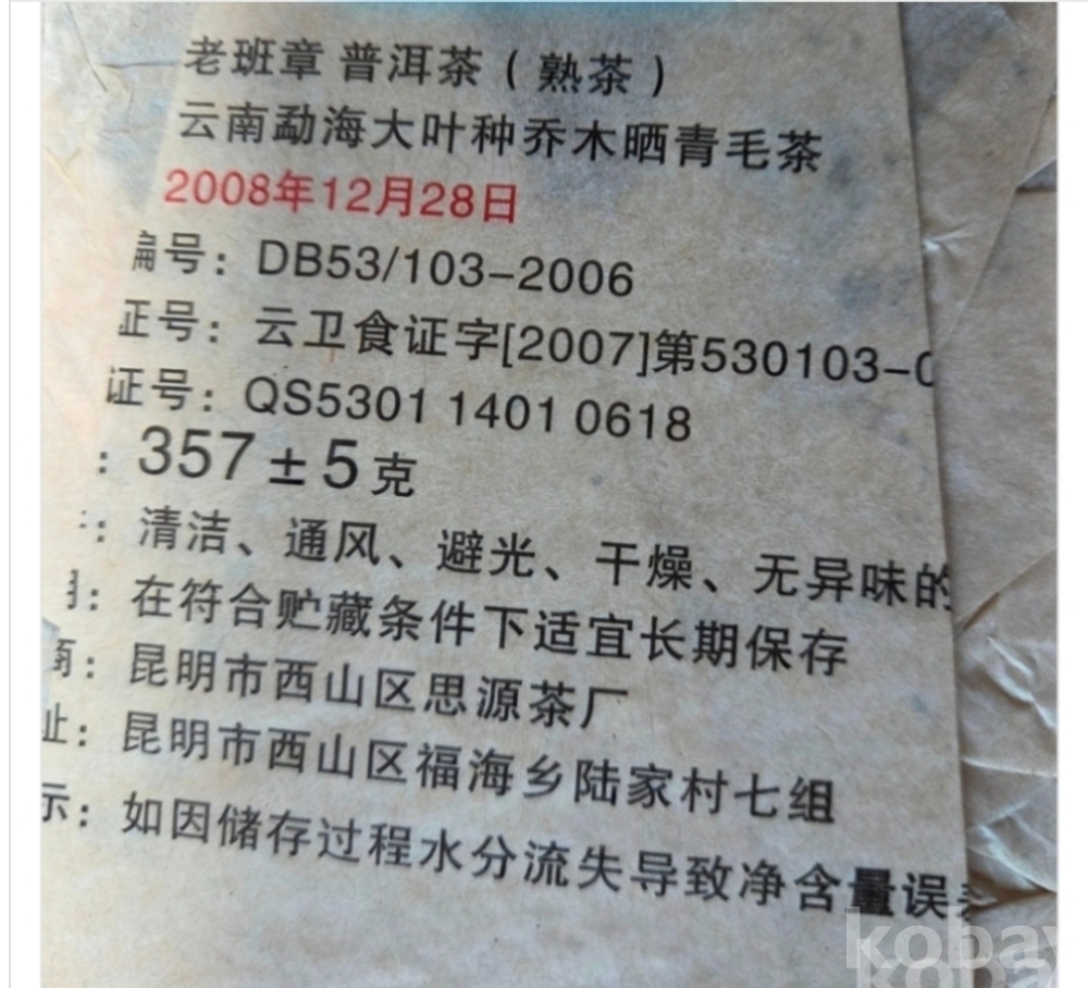 운남성 명품 보이차 노반장 (숙차) 7편 일괄