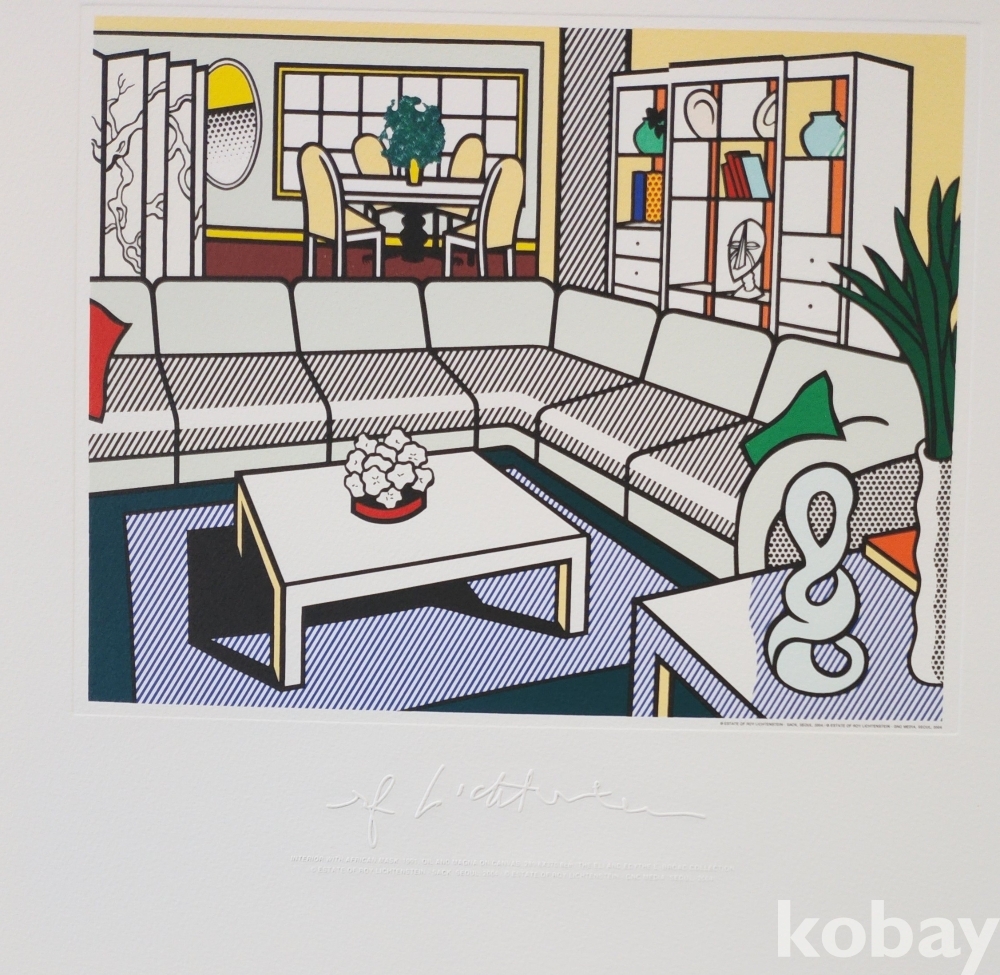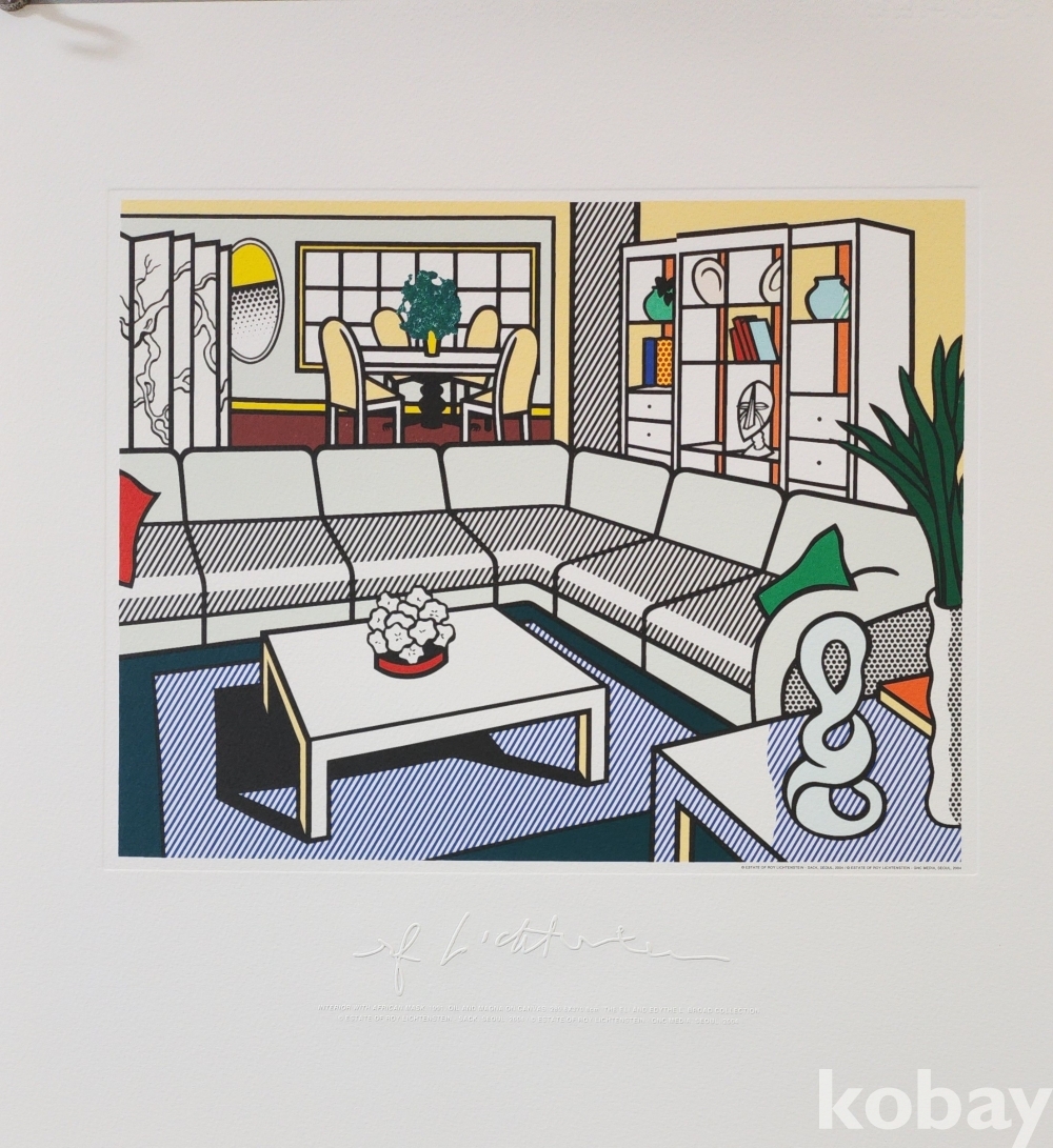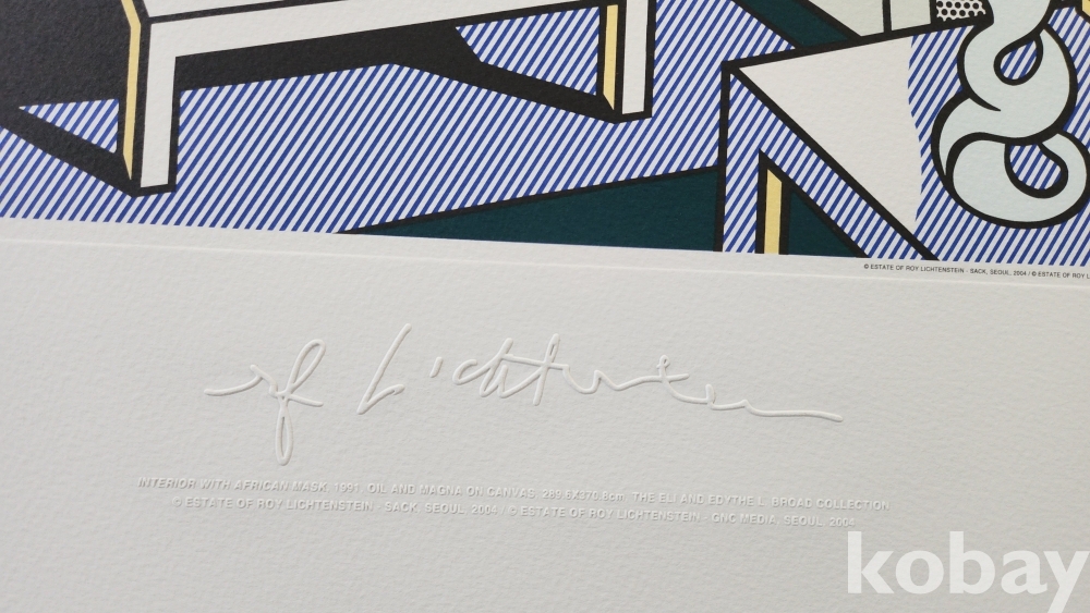 로이 리히텐슈타인 " 아프리카 가면이 있는 실내" 1991 년 作 특수 압인 판화입니다,