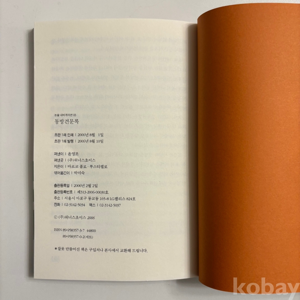 [셰계사, 동서교섭사, 마르코 폴로] 운영조, <동방견문록>, 위너스초이스, 2006, p. 151, 중상급(사진참조)