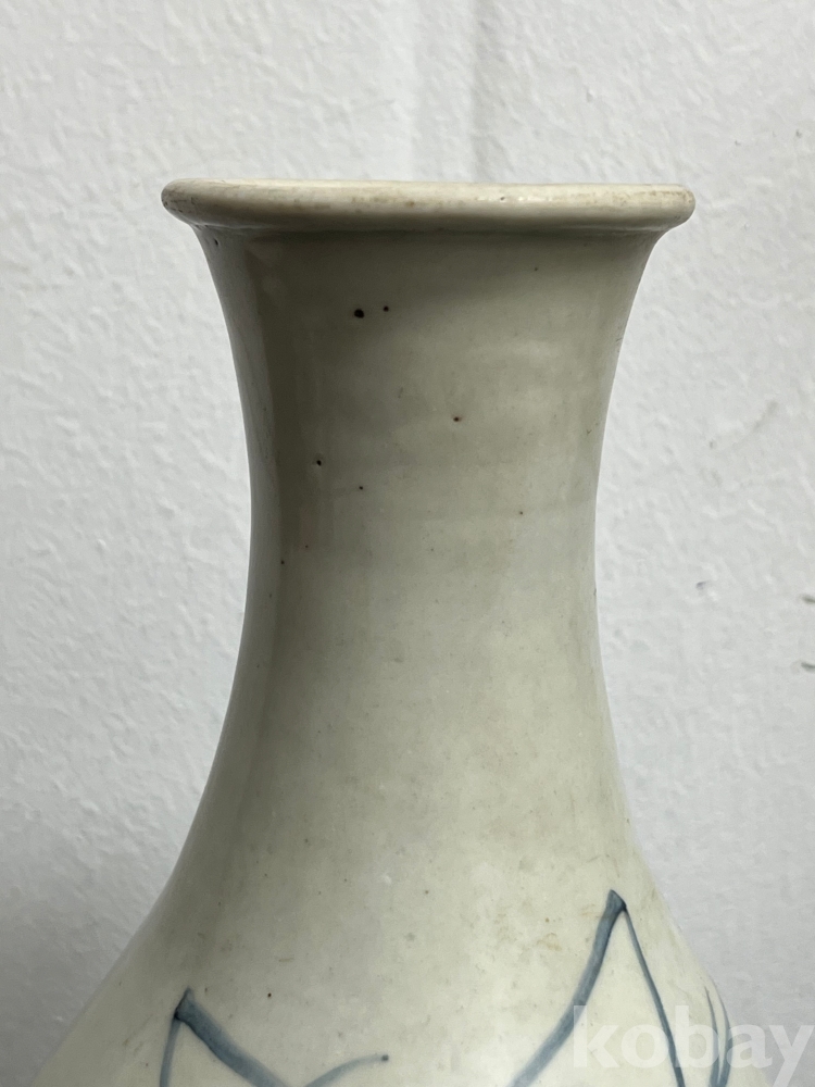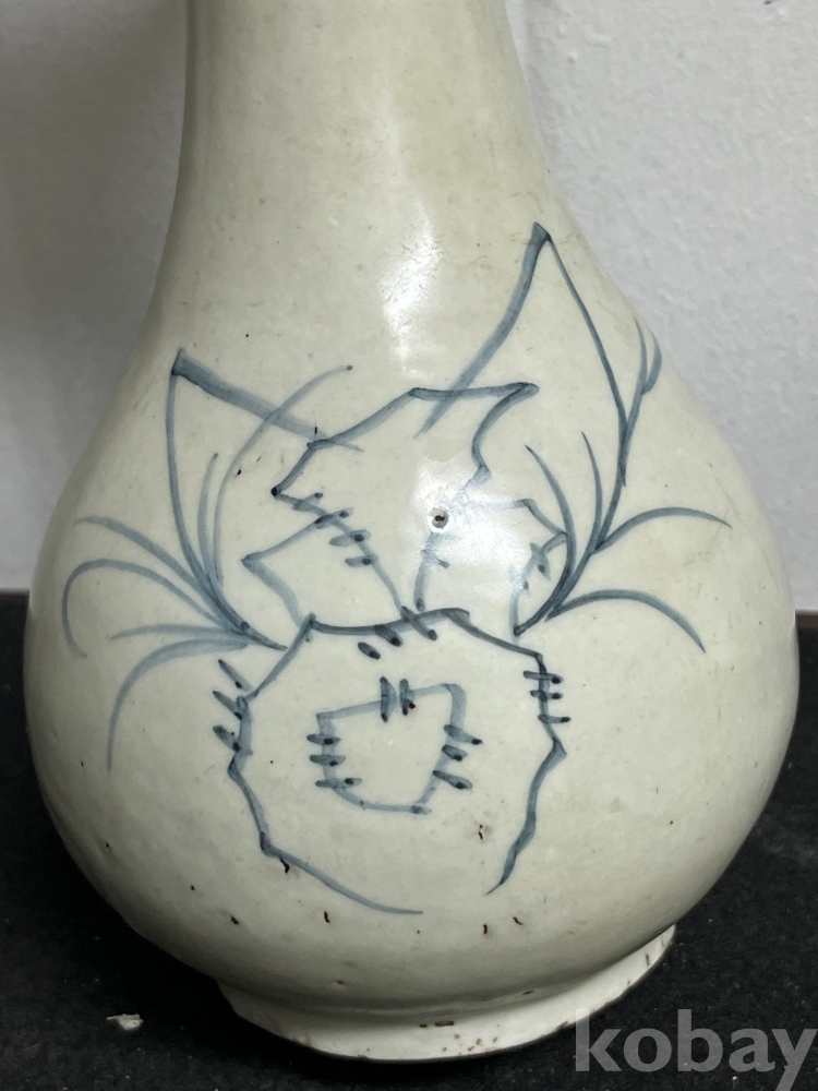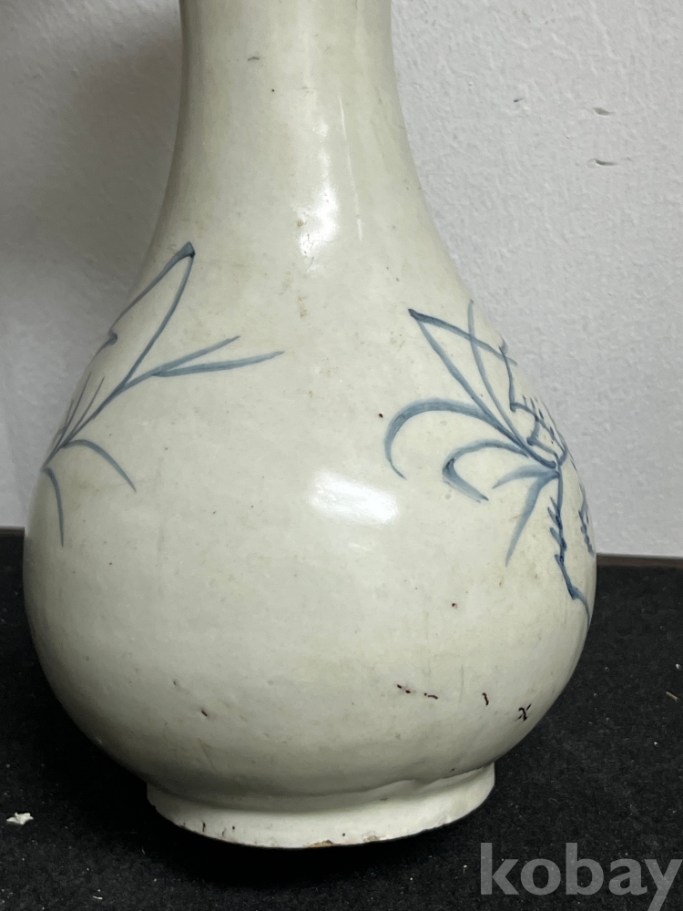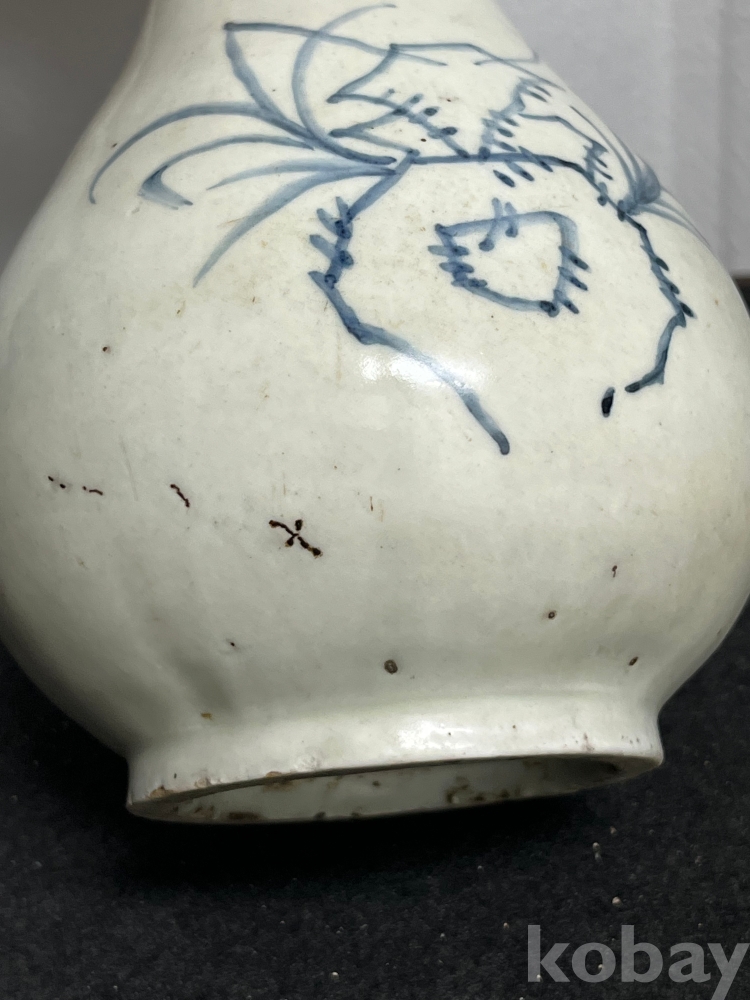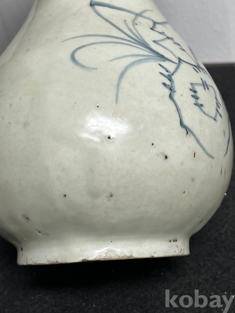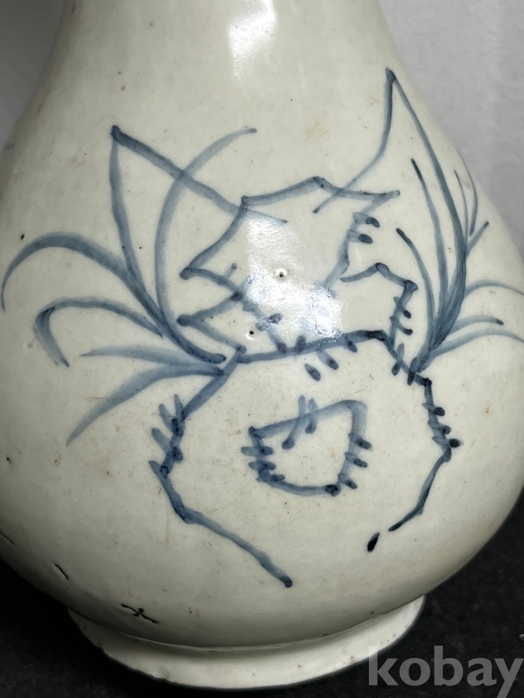 청화 안료는 부분적으로 농담 차이를 보이며 자연스러운 번짐과 발색을 보입니다.