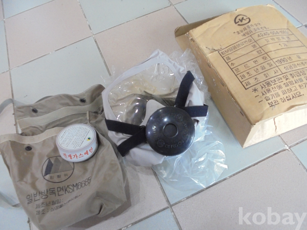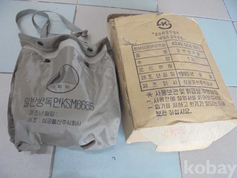 가정에비치하면 화재나 비상시 쓰고 사용할수있는 정부물품분류번호와 90년산이나 비닐속에 잘싸서 새것같은 방독면과 케스갑일체