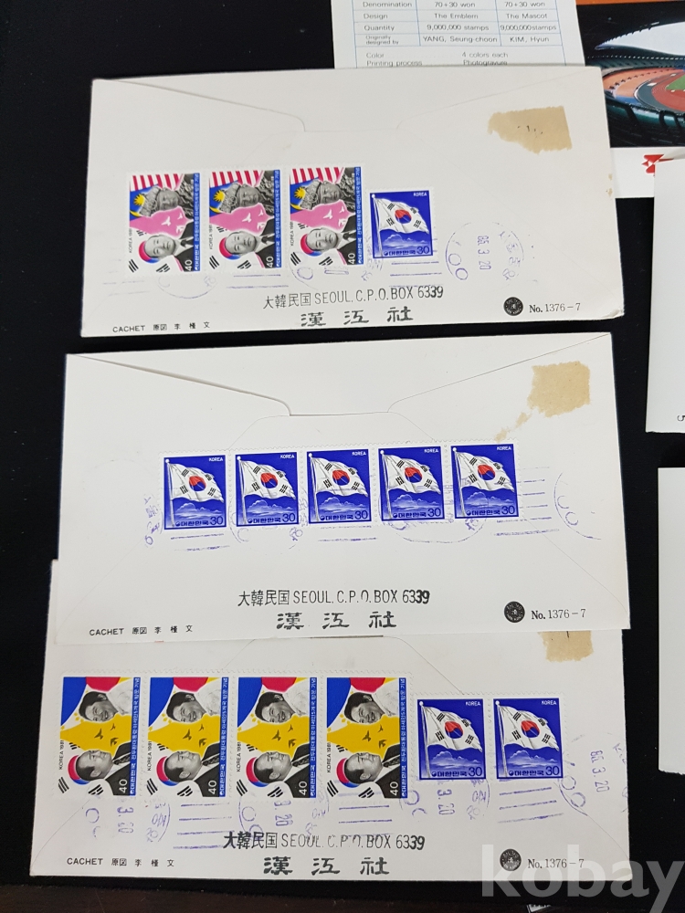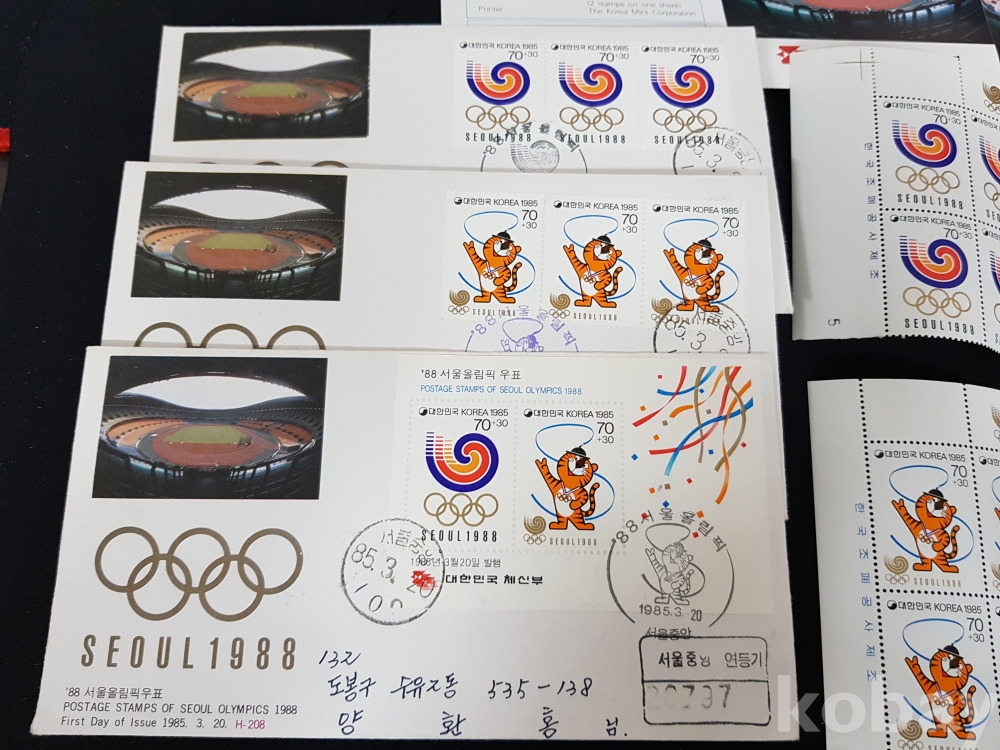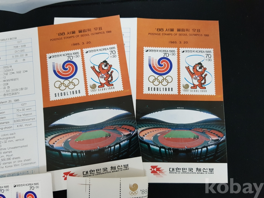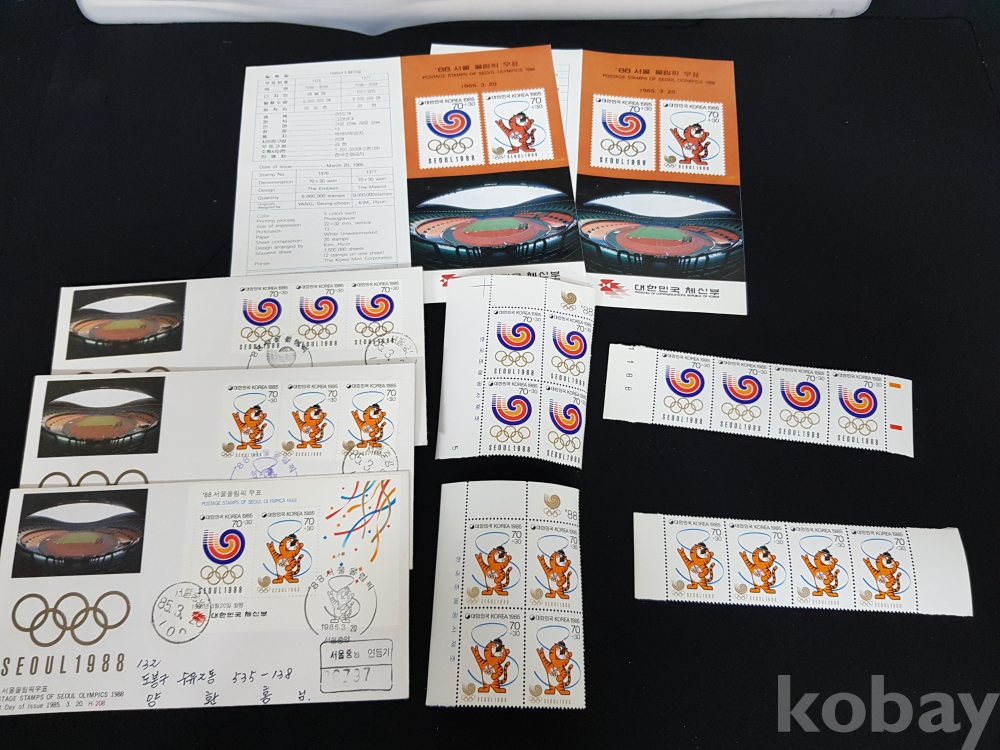 - 1985년 88서울올림픽 안내카드, 초일봉피, 명판 등 모음