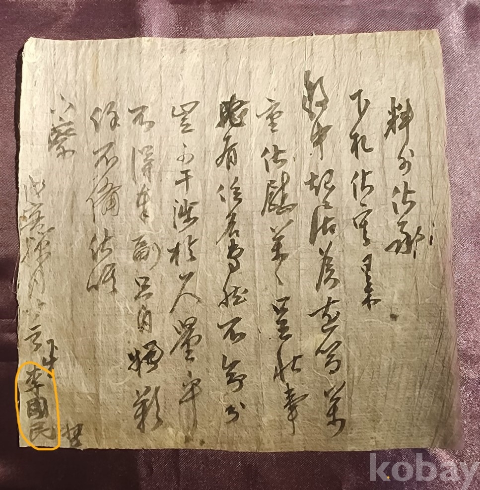 ◈ 무인년 12월 2일에 보낸 하생(下生) 이국민(李國民)이 보낸 간찰.