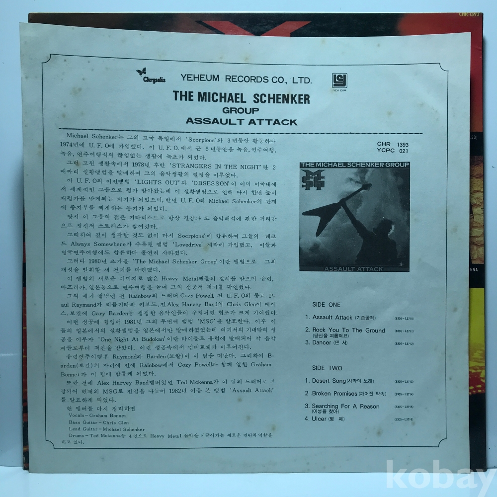 LP 83,820-86 The Michael Schenker Group - Assault Attack _ 자켓 EX+ 알판 EX+ 86 년 국내반