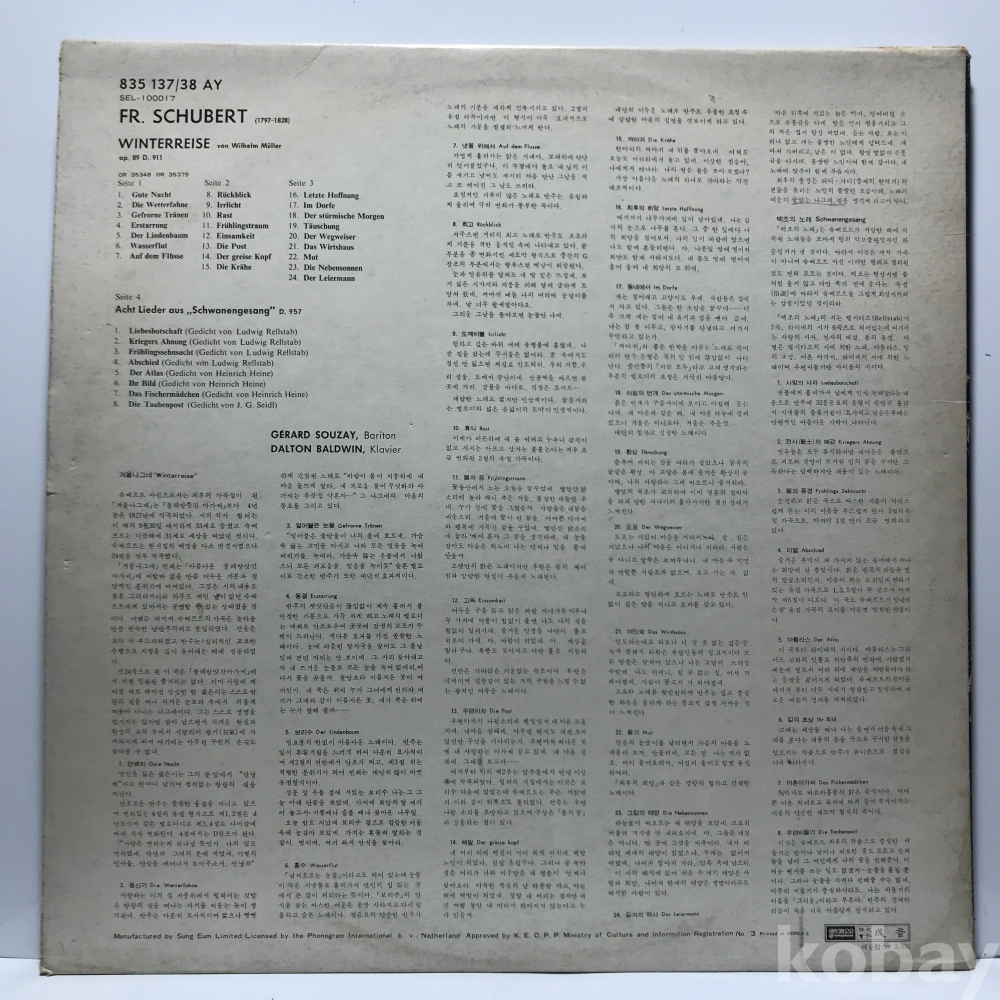 LP 85,000-79 Gérard Souzay - SCHUBERT: Winterreise . 자켓 EX 알판 EX 79 년 국내반