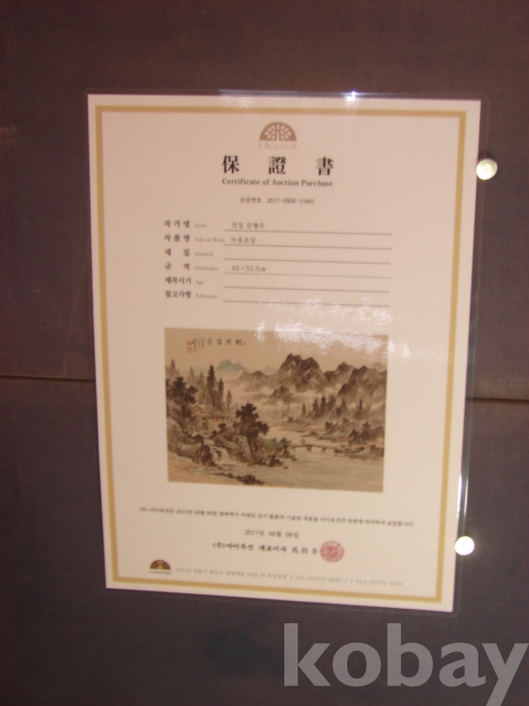 # 액자는 낡아 해체하였습니다. 작품만 보내듷립니다. I-옥션 보증서 있음.