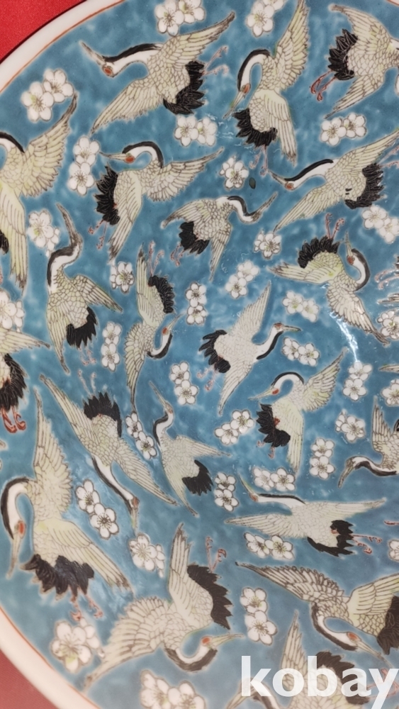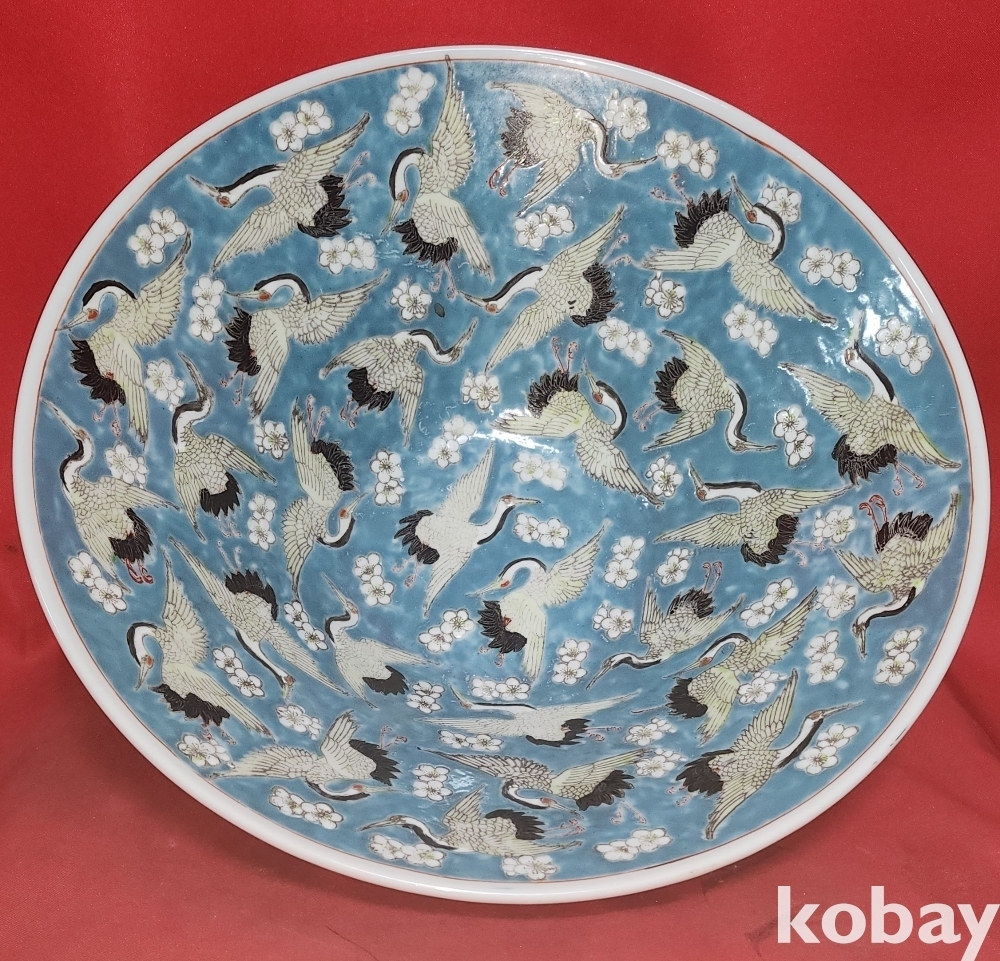 내외부에 약 60마리의 학이 꽃과 함께 시문된 명품입니다,