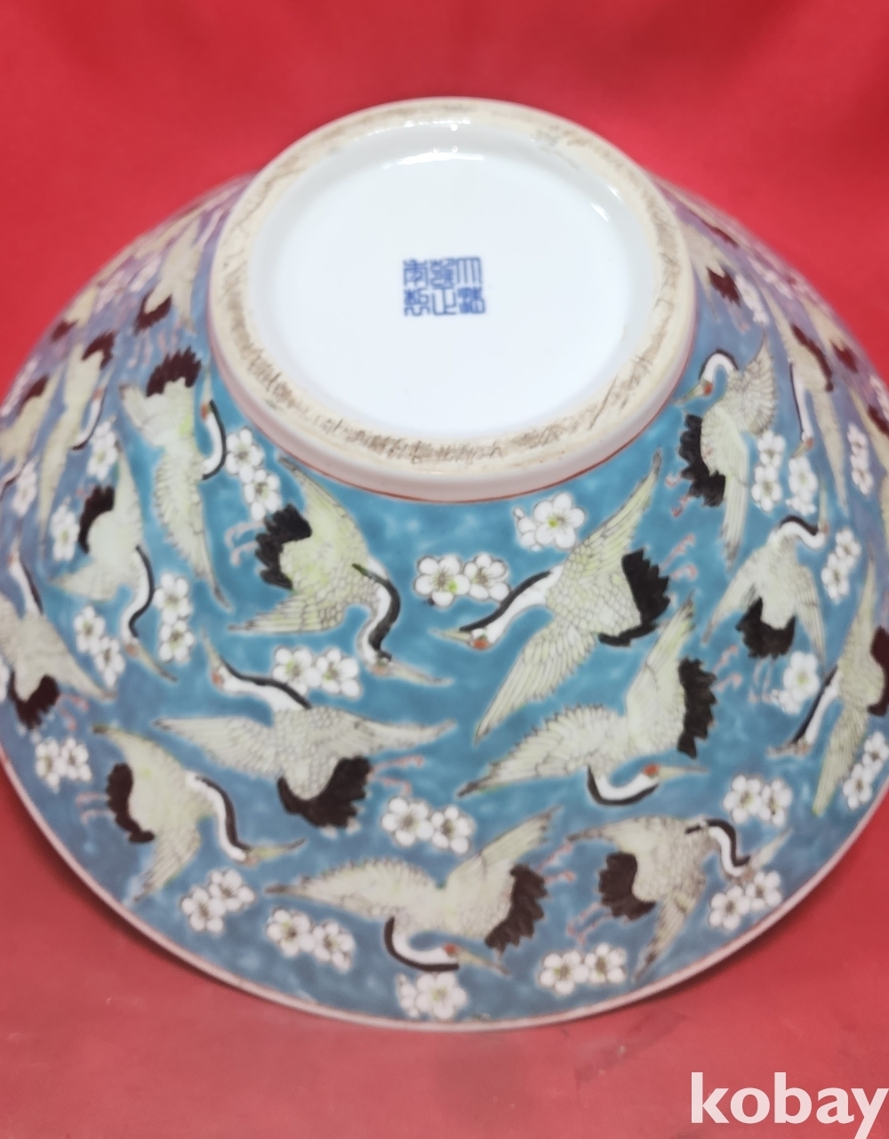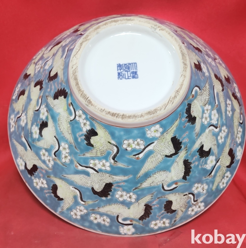 대청옹정 관지 보이는 꽃과학(花鶴)문양 큰 완입니다,