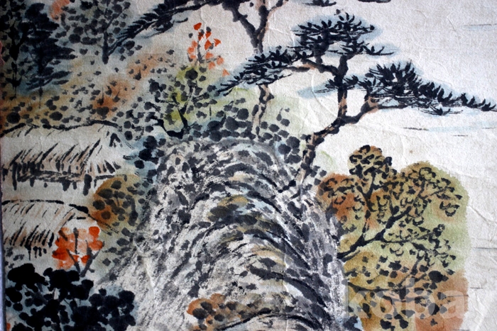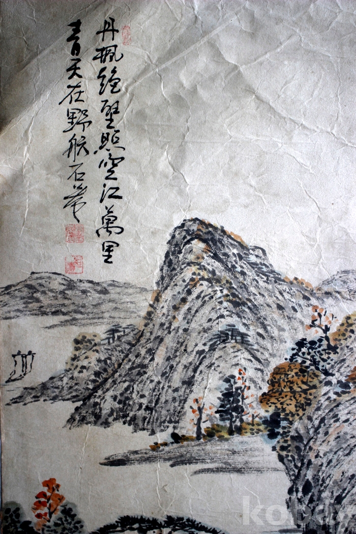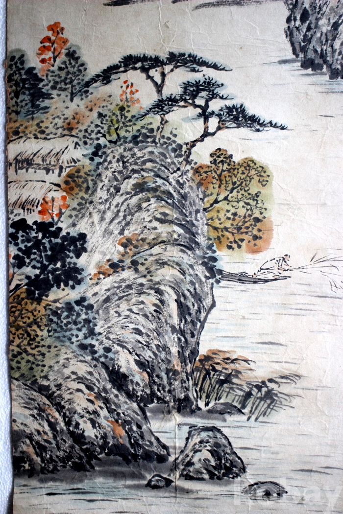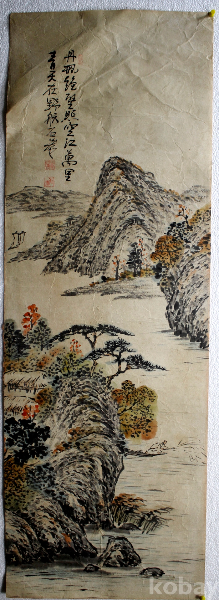 작가를 알 수 없는 石?의 추경산수 (2) - 초가집이 있는 강가의 가울 풍경