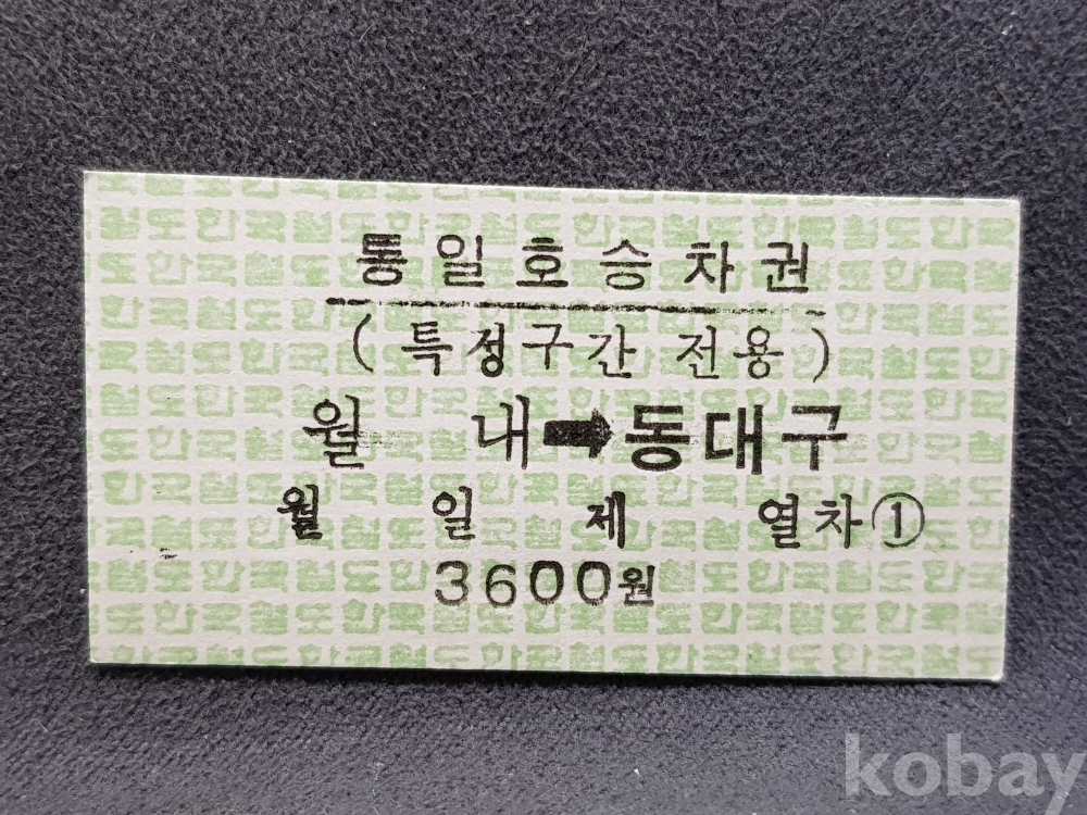 - 미사용 통일호 승차권(특정구간전용) " 월내 ▶ 동대구 " 3600원