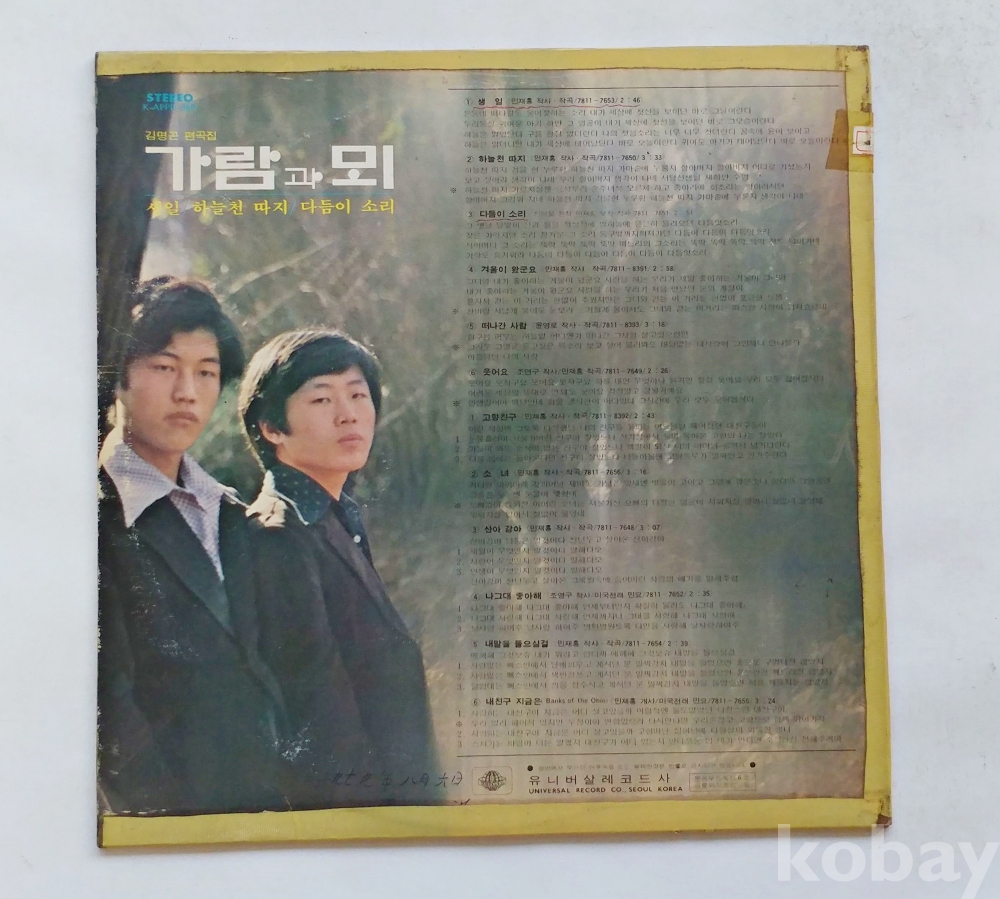 | 자켓상태 | EX : 약간의 마모, 모서리 찢김 존재 | 음반상태 | NM : 개봉했으나 미사용급, 스크래치 없음 | 발매정보 | 알수없음 | 가사지여부 | 무 |