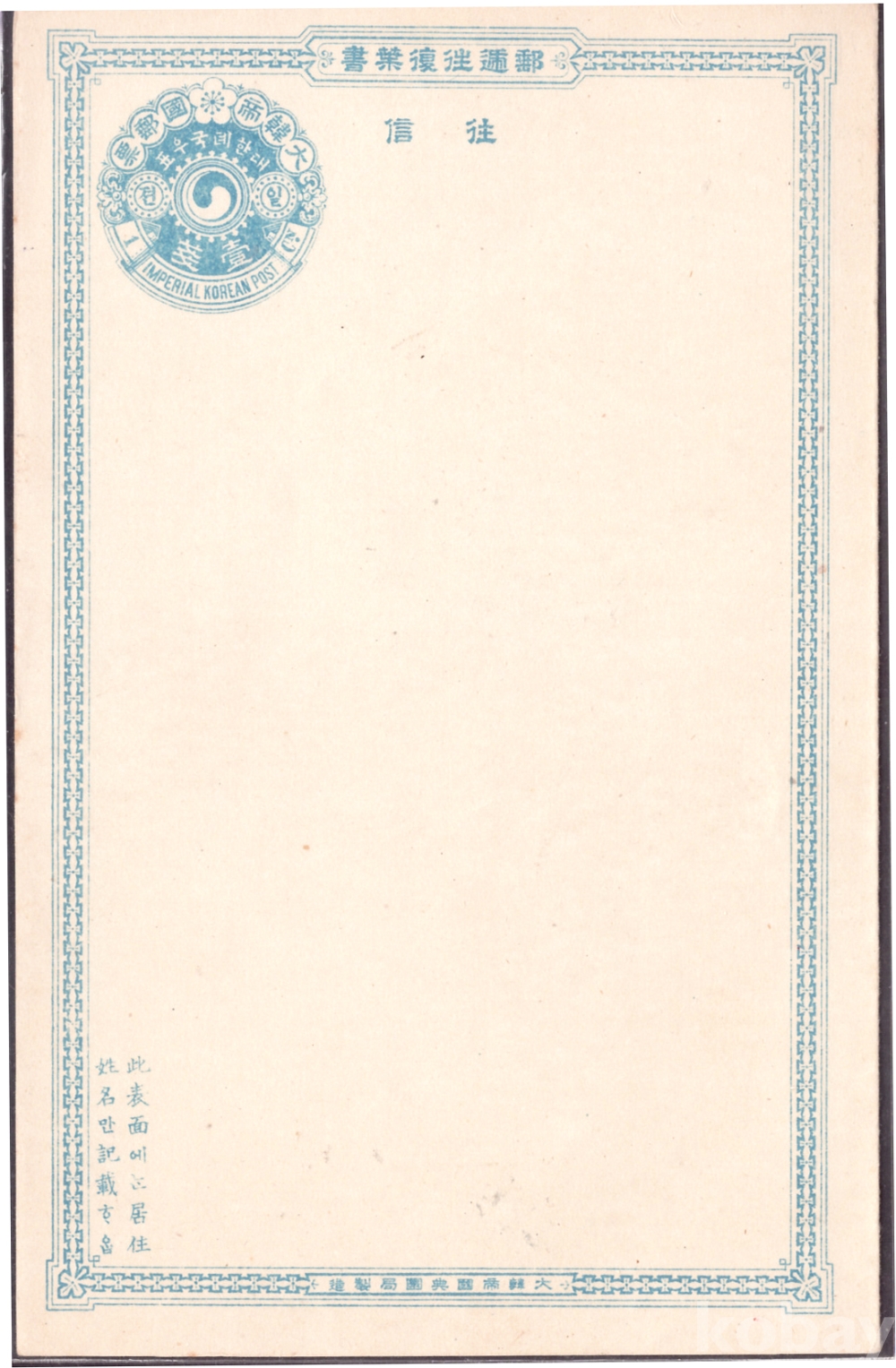 대한제국 엽서#3. 1전권. 왕복. 전환국 발행 (未사용)