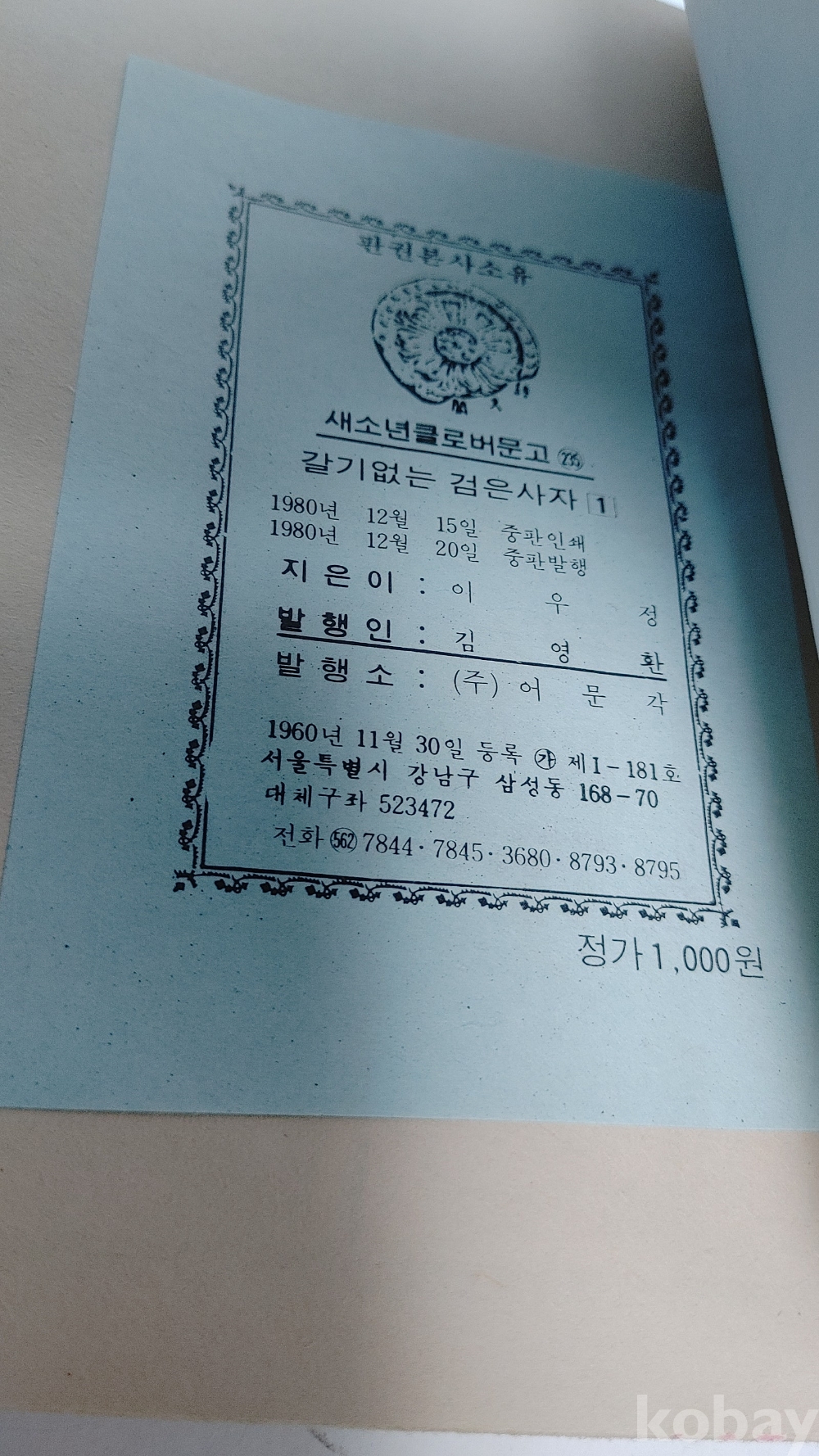 1980년 클로버문고 갈기없는 검은사자 1편 만화책 입니다