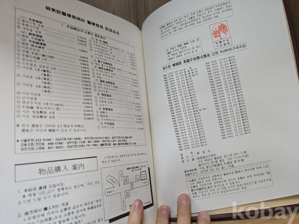 도서명: 고려수지요법강좌 제1권 (원명: 고려수지침강좌 대증보 제5판)