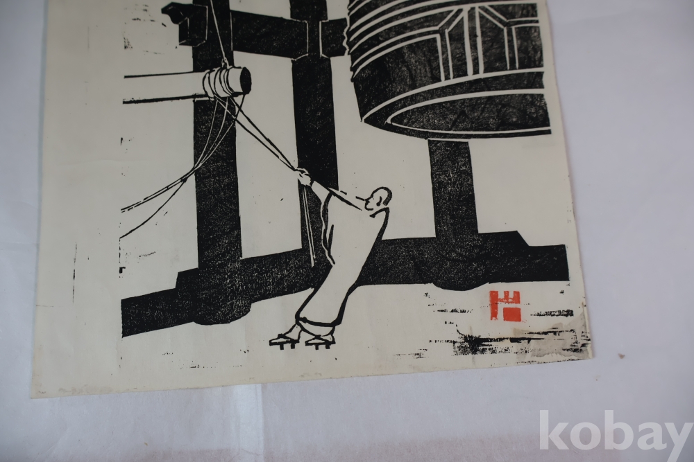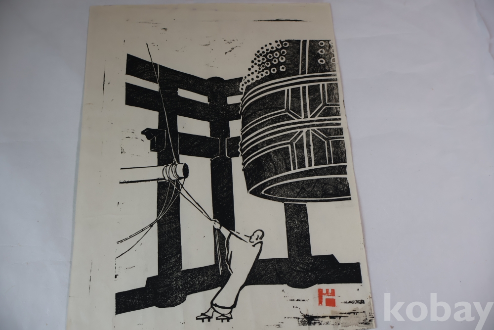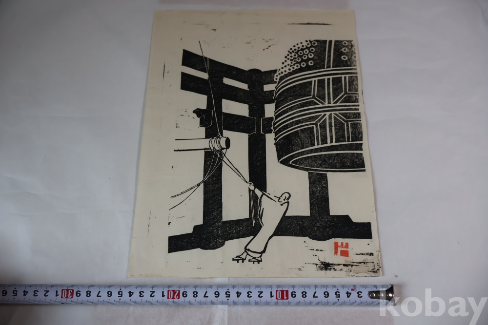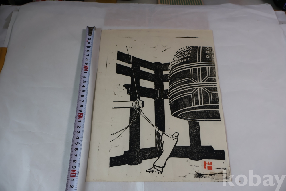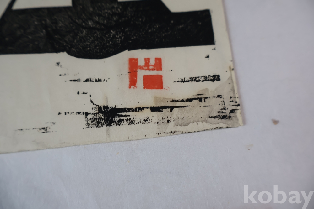 귀한 목판화 임니다 정적의 순간을 멋지게 표현한 선화의 느낌을 주는 명작 임니다 1960대 이전의 명작 임니다 소사쿠 한가 임니다