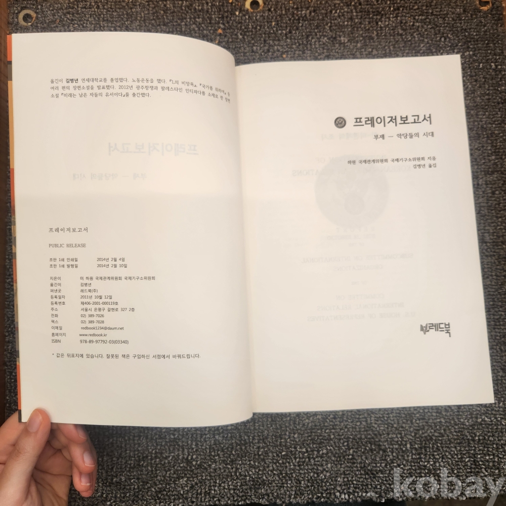 [한국현대사, 박정희 시대, 제3공화국]하원 국제관계위원회 국제기구소위원회, 김병년 역, <프레이저 보고서 : 한국현대사와 박정희 시대에 대한 가장 완벽한 평가서>, 레드북, 2014, p. 676, 상태 상급(사진참조)