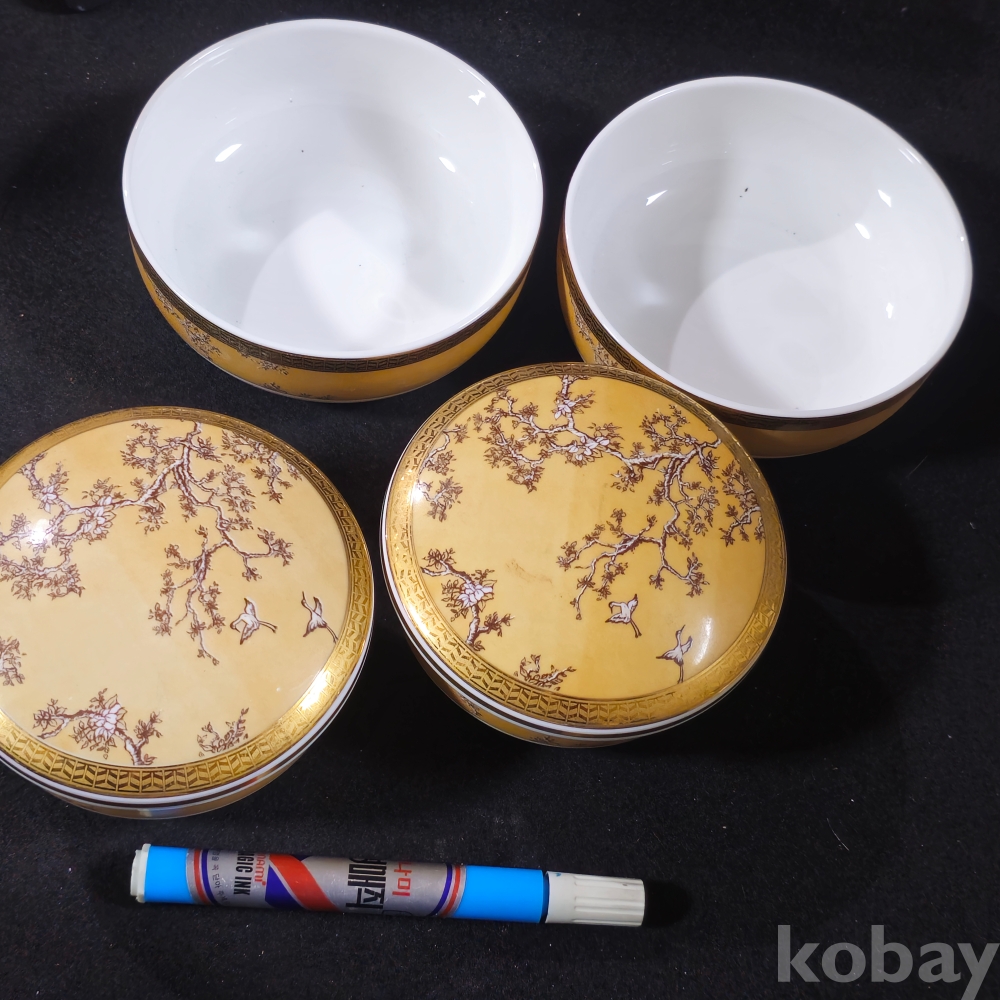 (((도자기식기))) 오래전 소나무와 학그림 금장 행남자기 도자기 대접2 / 주발 2 (05080天上)