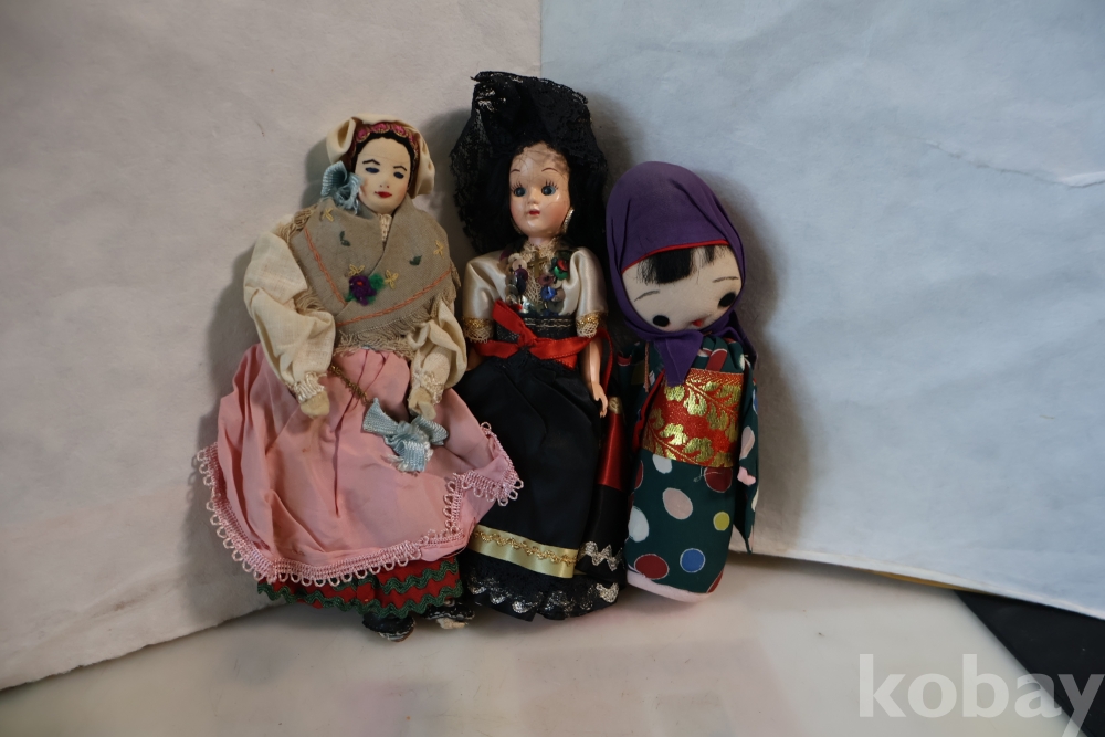 세계 인형 3 세트 임니다 각국의 인형 이며 장발? 인형은 눈을 감고 뜨는 기능이 보임니다