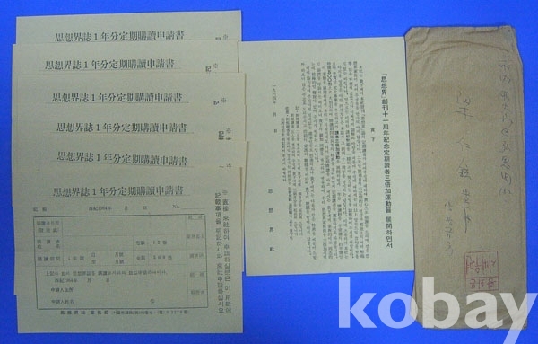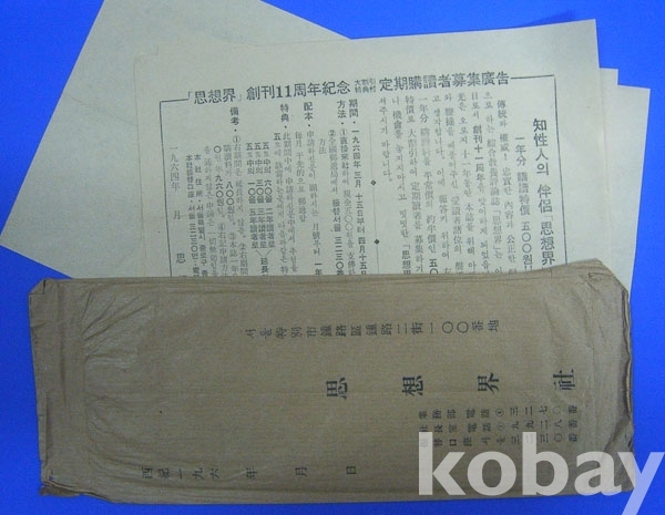 1964년 광화문 시내우편 실체*사각고무인(25mm*30mm)/사상계창간11주년기념 정기독자 3배가 운동을 정기하면서 리후렛 등 포함