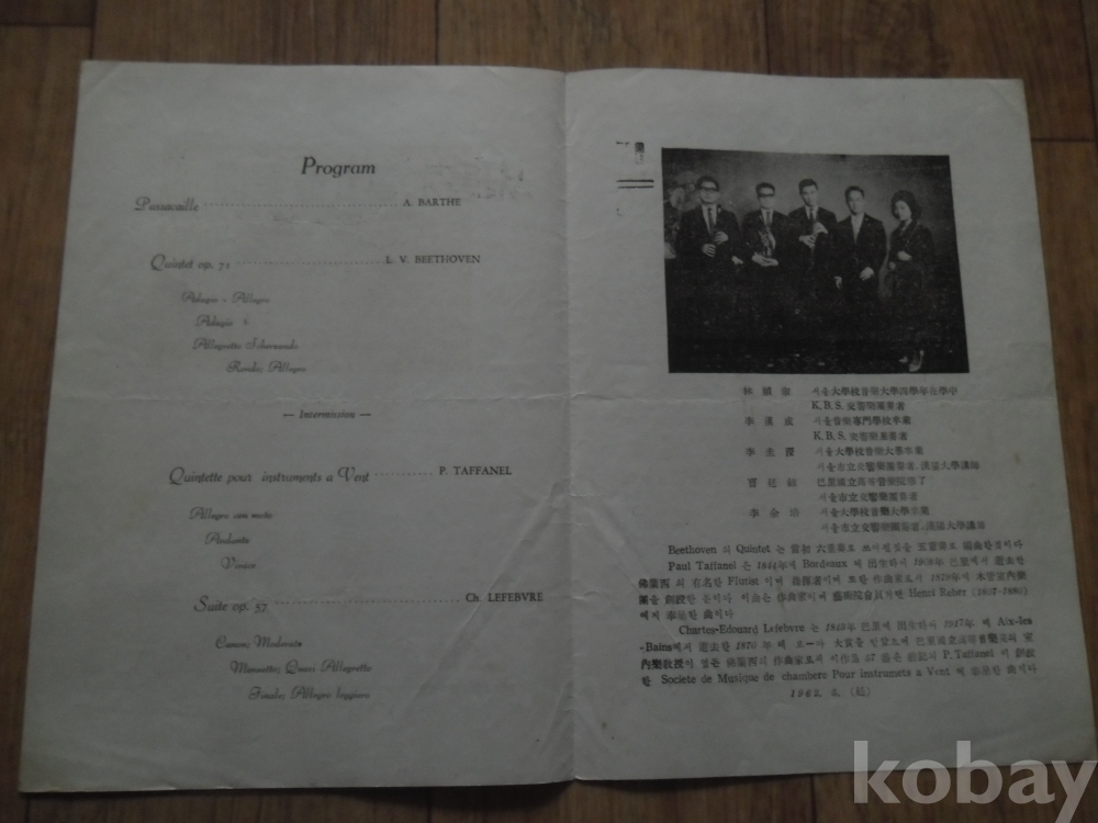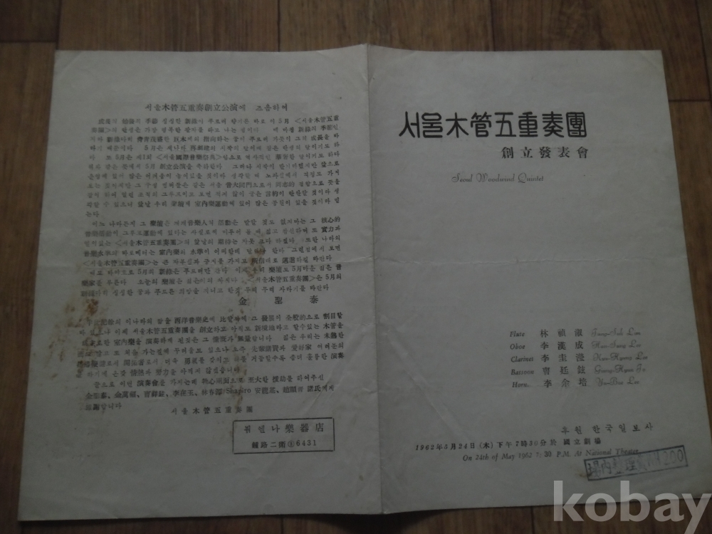 1962년 서울목관5중주단 창립발표회(국립극장)