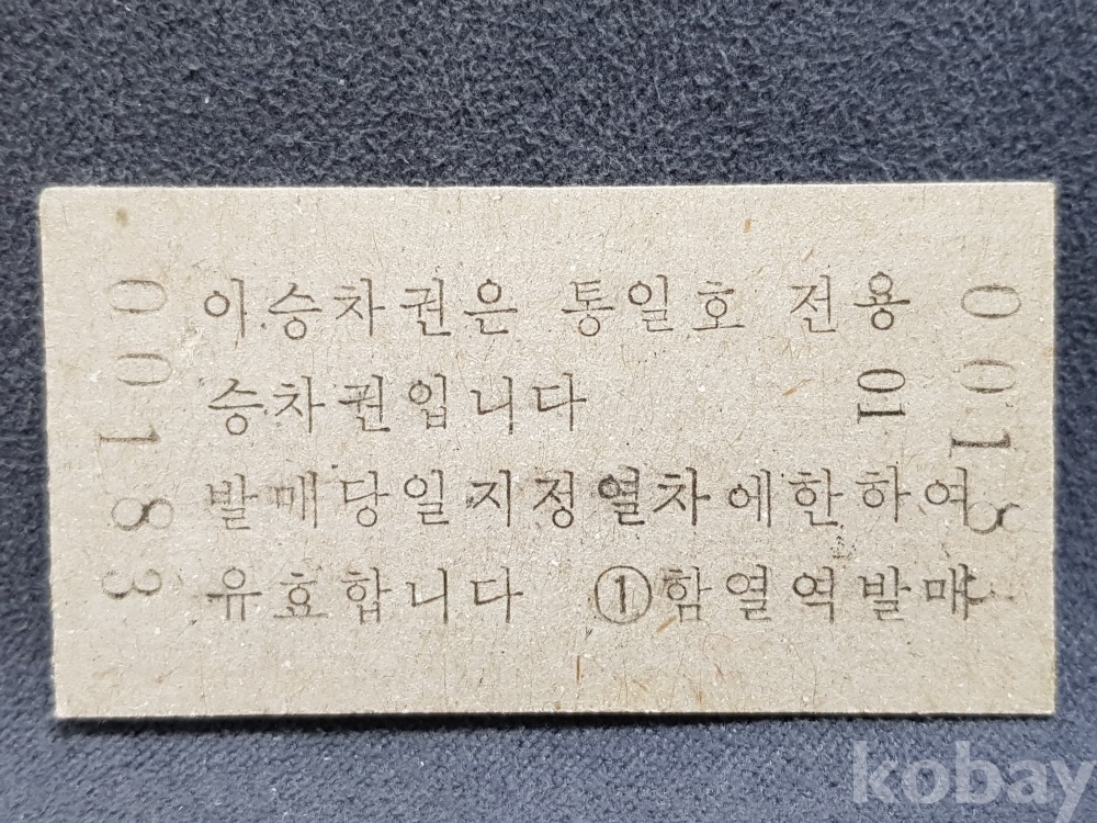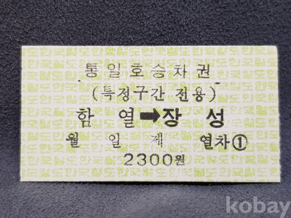 - 미사용 통일호 승차권(특정구간전용) " 함열 ▶ 장성 " 2300원