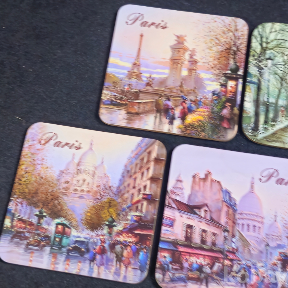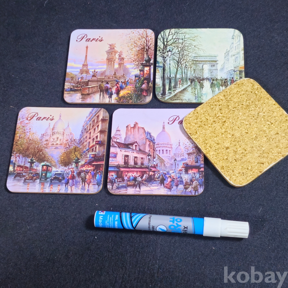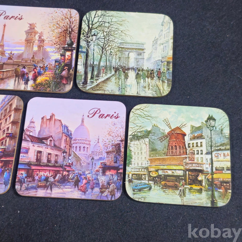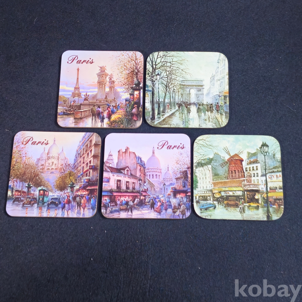 (((관광기념품/코스타/컵바침))) 오래전 프랑스 파리 관광기념 콜크 코스타 5종