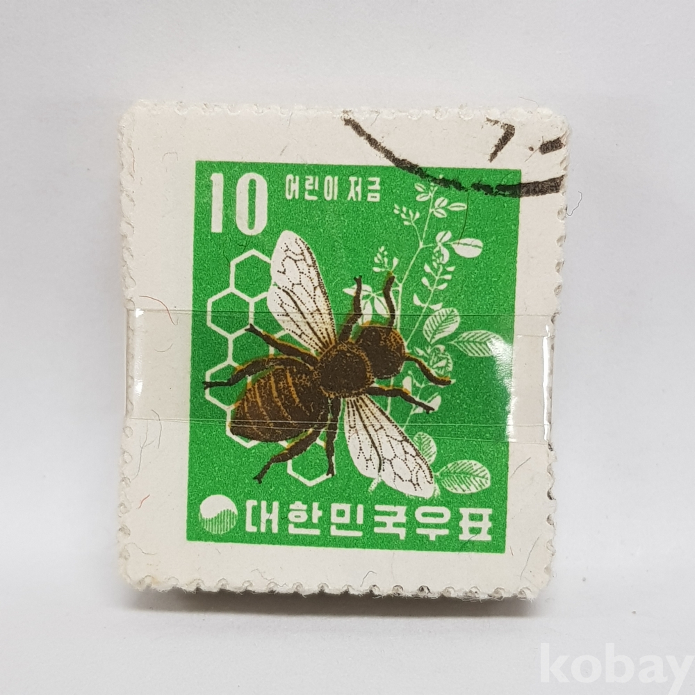 - 1960년 어린이 저금 10환 벌과벌집 일부인 미확인 사용제 우표 약 100매 묶음