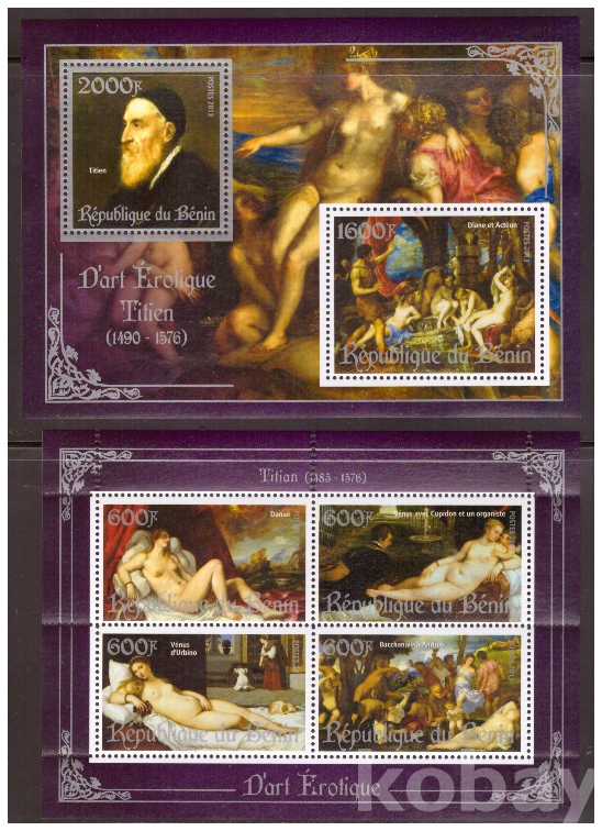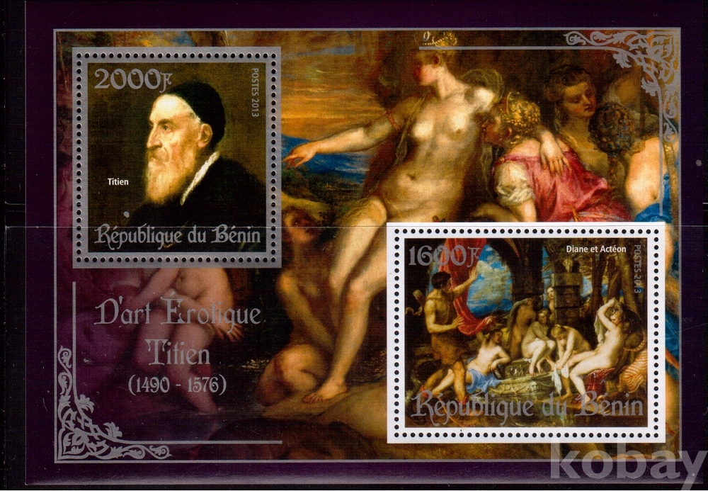 (누드명화) 베냉 2013 베첼리오 티치아노 누드화 2 s/s(silver) MNH