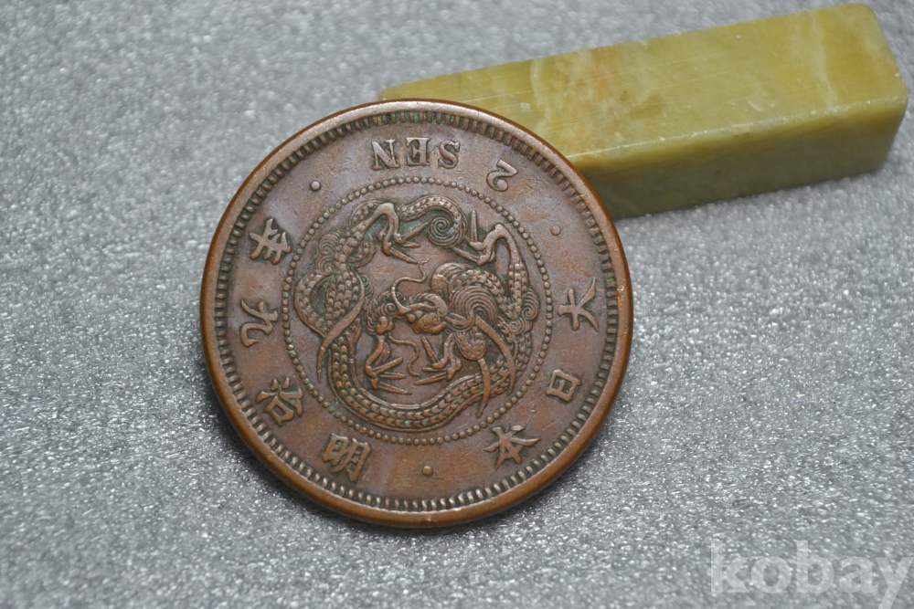 ㅡ> 100년 넘는 오래된 명치9년도(1876년도) 일본 대형 용 2전청동화 입니다.