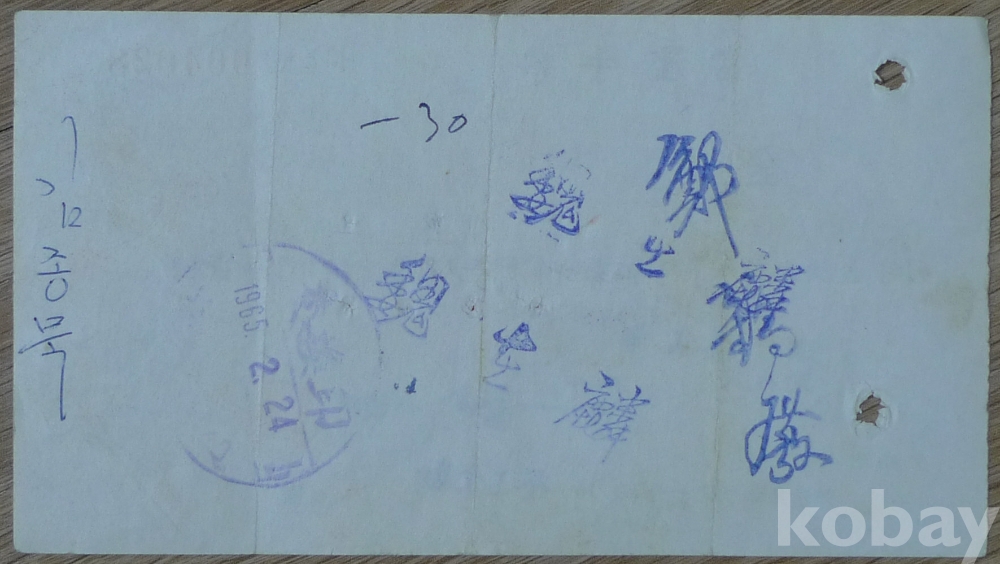 1965년 한일은행 부산지점 발행 당좌수표