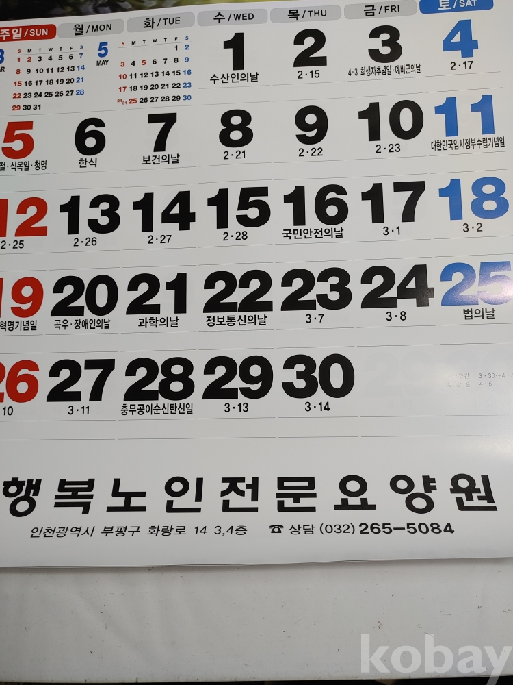 ★천원출발★ P-2.095 행복노인전문 요양원 2026년 벽걸이 달력 (큰글씨)