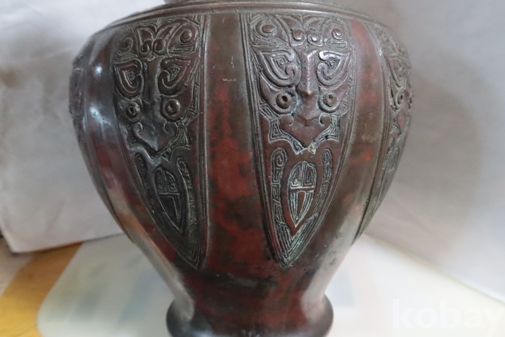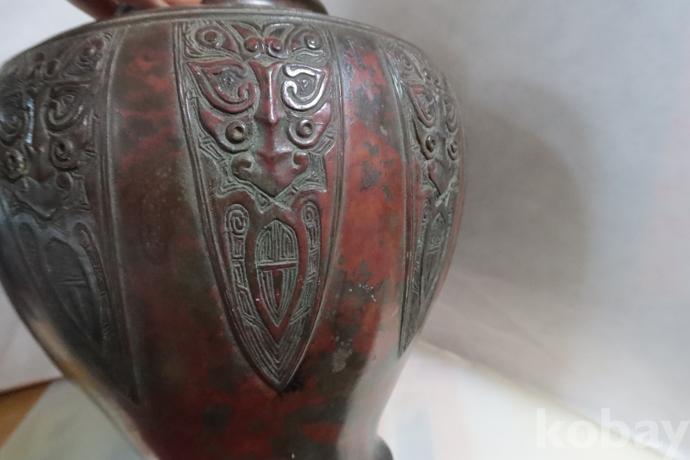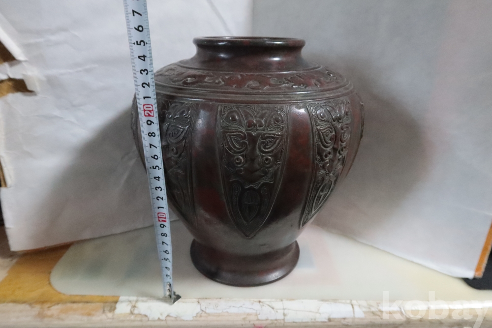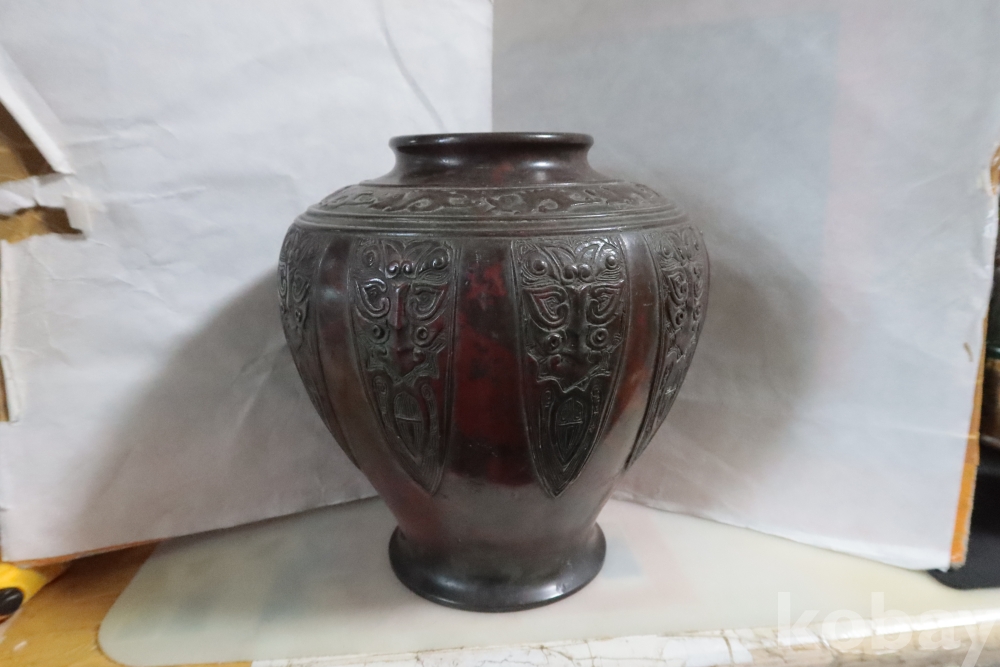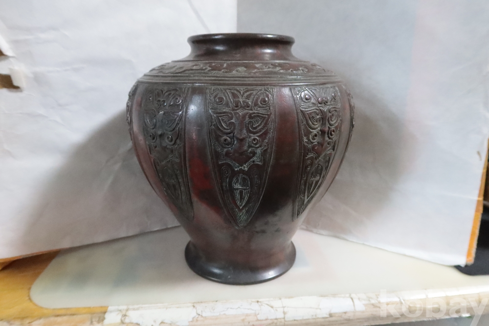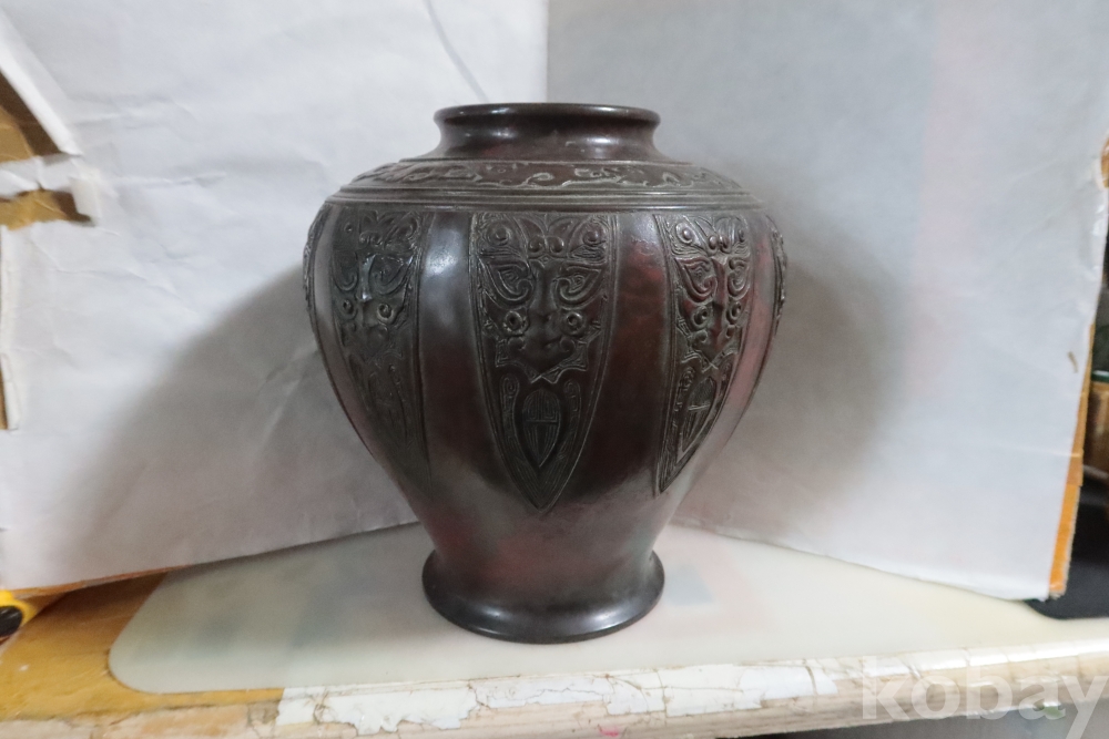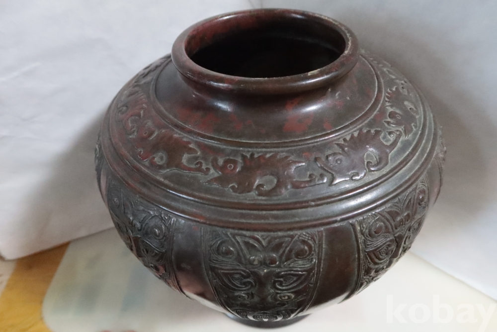 귀한 칠기처리된 고급 청동 임니다 1920 30대의 묵직한 명물 임니다 특히 고대 문양의 부조가 멋진 고태미를 가진 명물 임니다 100년전 기물 임니다