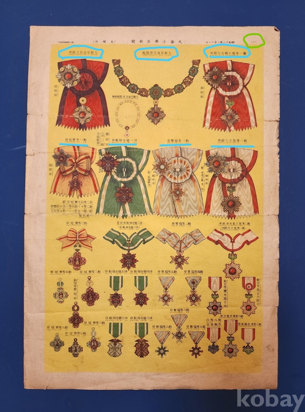 ◈ 대훈위 국화대수장(大勳位菊花大綬章)을 받은 이왕 은(李王垠 영친왕), 훈일등 보관장(勳一等寶冠章)에 이왕 구(李王垢)의 비(妃) 윤씨(尹氏)•이준(李埈)공의 비(妃) 김씨(金氏)•흥친왕(興親王)인 이희(李熹公)공의 비(妃) 이씨(李氏)•이강(李堈)공의 비(妃) 김씨(金氏) 등, 훈일등 욱일대수장(勳一等旭日大綬章)에 윤덕영(尹德榮), 훈일등 서보장(勳一等瑞寶章) 끝에 박영효(朴泳孝) 등의 이름이 보인다.