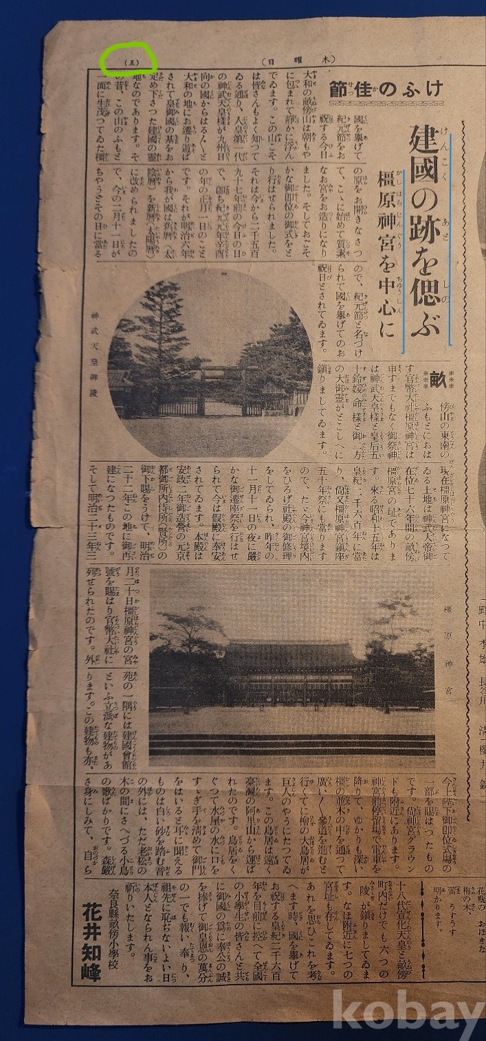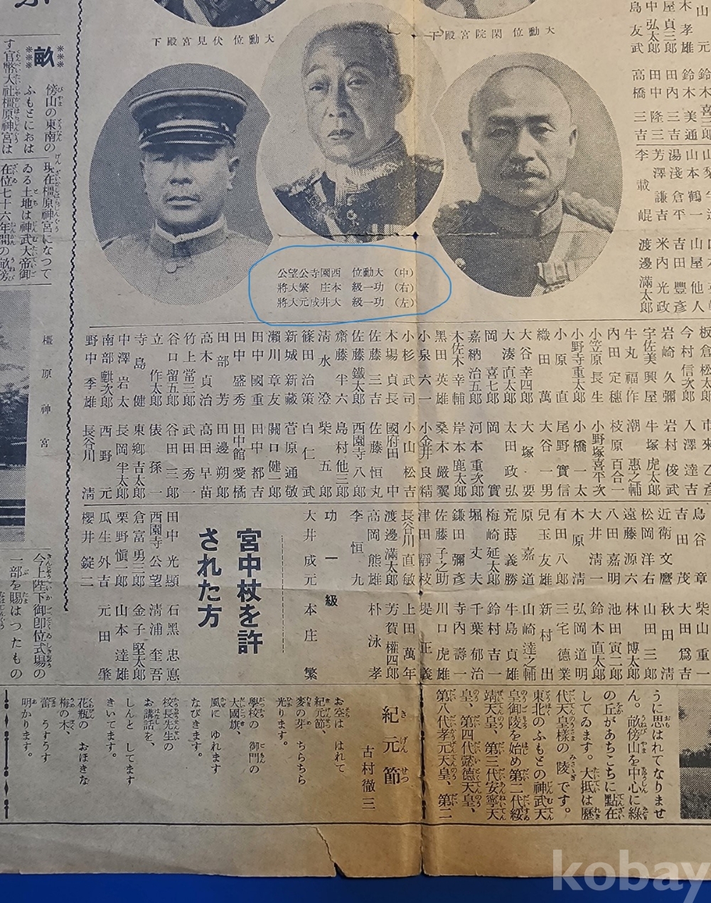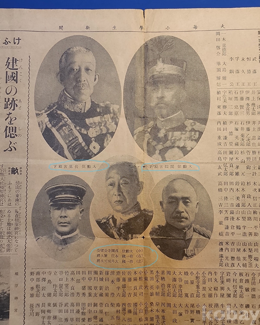 ◈ 3면에 『일본서기』에 나오는 일본의 제1대 신무천황(神武天皇)의 사진과 소화(昭和) 12년(1937년)에 고급훈장(高級勳章)을 단 인물 대훈위 한원궁 전하(大勳位閑院宮殿下) 등의 사진이 게재되어 있다.