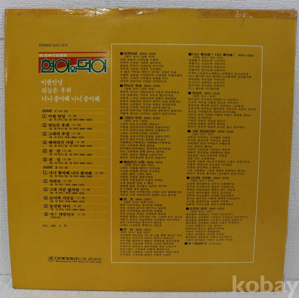 [추억의 레트로 LP음반 no.4780] 현이와 덕이 (이젠 안녕/뒤늦은 후회/너나 좋아해 나너 좋아해) LP