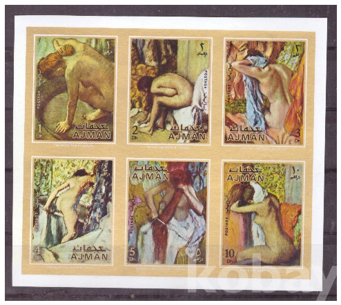 (누드명화) Ajman(아지만) 1971 에드가 드가의 욕조외 (무공) sheet of 6 MNH
