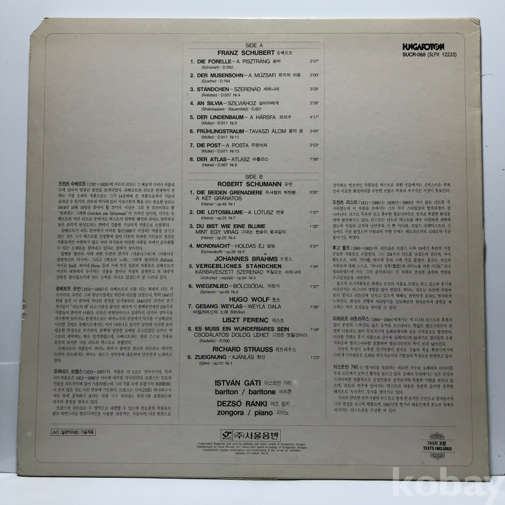 LP 86,000-84 ISTVAN GATI - Lieder Recital 자켓 EX 알판 EX+ 국내반