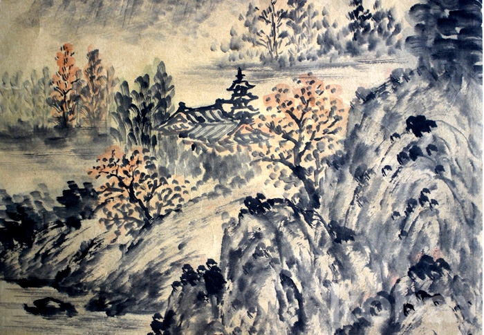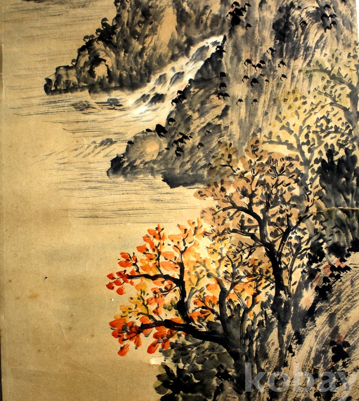 대한민국미술대전 심사위원을 지낸 咲嬋(소선) 추순자의 작품 (3) - 산사가 있는 강가의 가을풍경